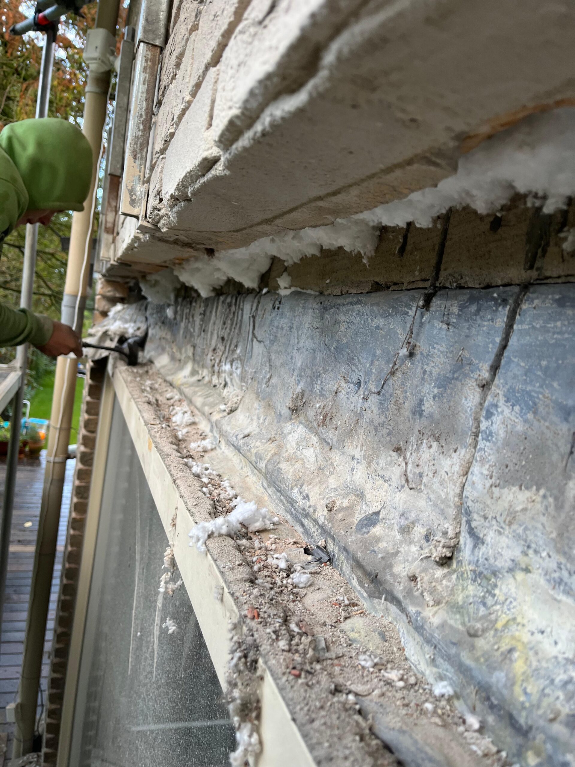 1) Het bestaande voegwerk uithakken en opnieuw voegwerk aanbrengen. (d.m.v. stof-arm afzuigingen)