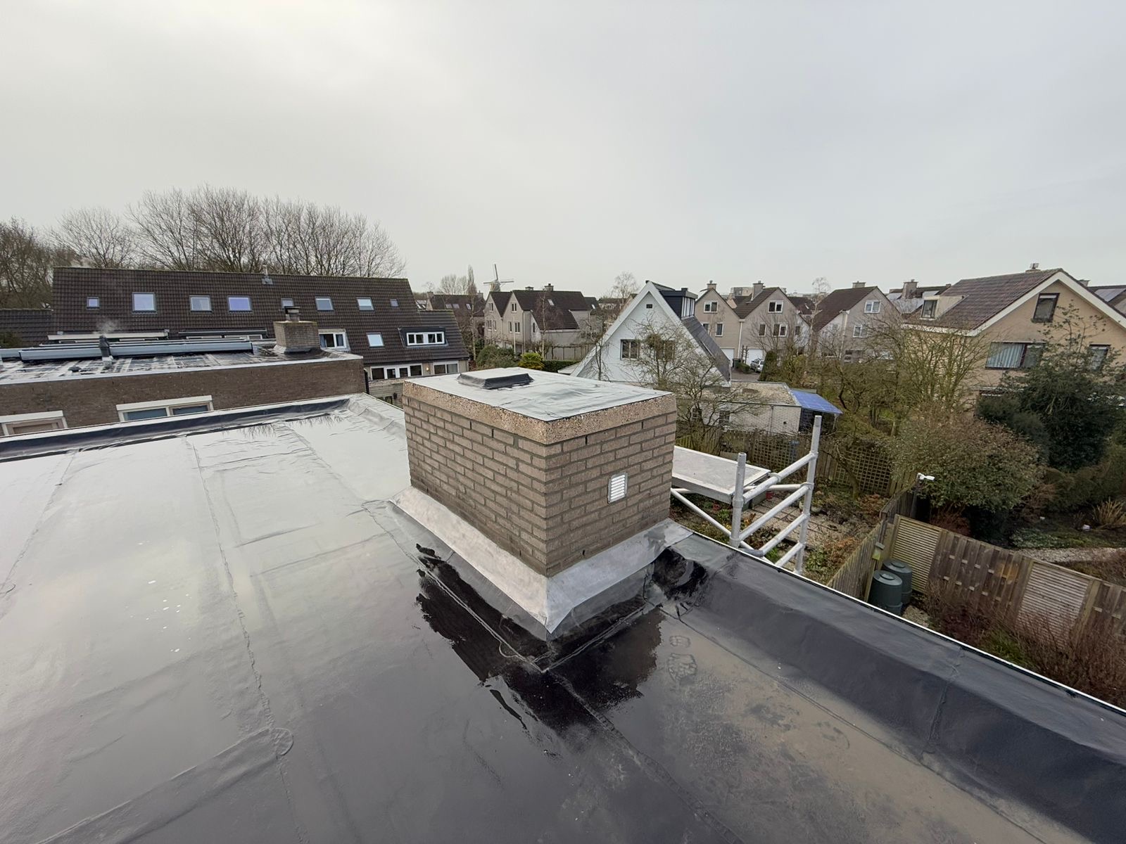 De bovenkant van de schoorsteen wordt meegenomen met het reinigen. (cement deklaag) mocht deze kapot zijn of beschadigd zijn dan zullen wij dit repareren of vervangen. Naderhand zullen wij de cement deklaag behandelen met fillcoat. Dit is een coating dit voorkomt dat regenkant via de bovenkant van de schoorsteen kan indringen. Het dak wordt na het beëindigen van de werkzaamheden weer schoon opgeleverd, incl. het schoonmaken van de dakgoten.