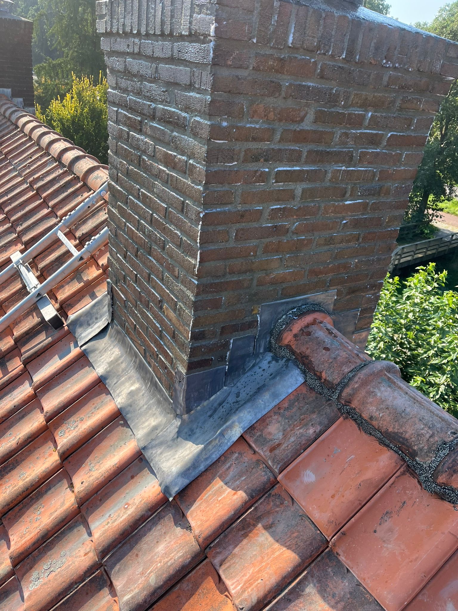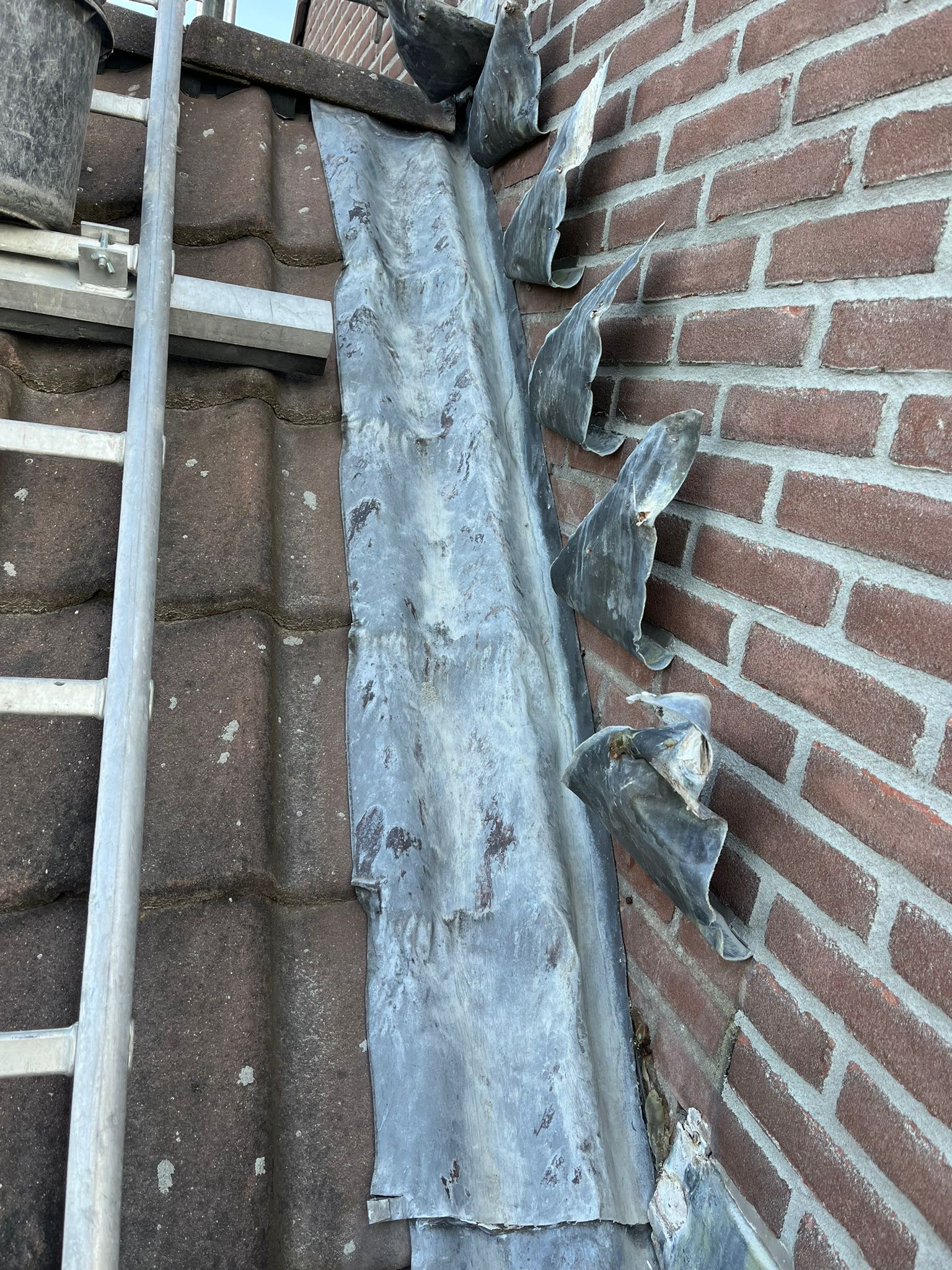 Het oude lood zullen wij verwijderen en afvoeren, het nieuwe lood is 18 ponds en wordt tot aan het binnenblad aangebracht. Het lood zetten we vast met knellatten aan de binnenmuur. De knellat zullen wij ook afkitten zodat het vocht via het lood naar buiten zal vloeien.