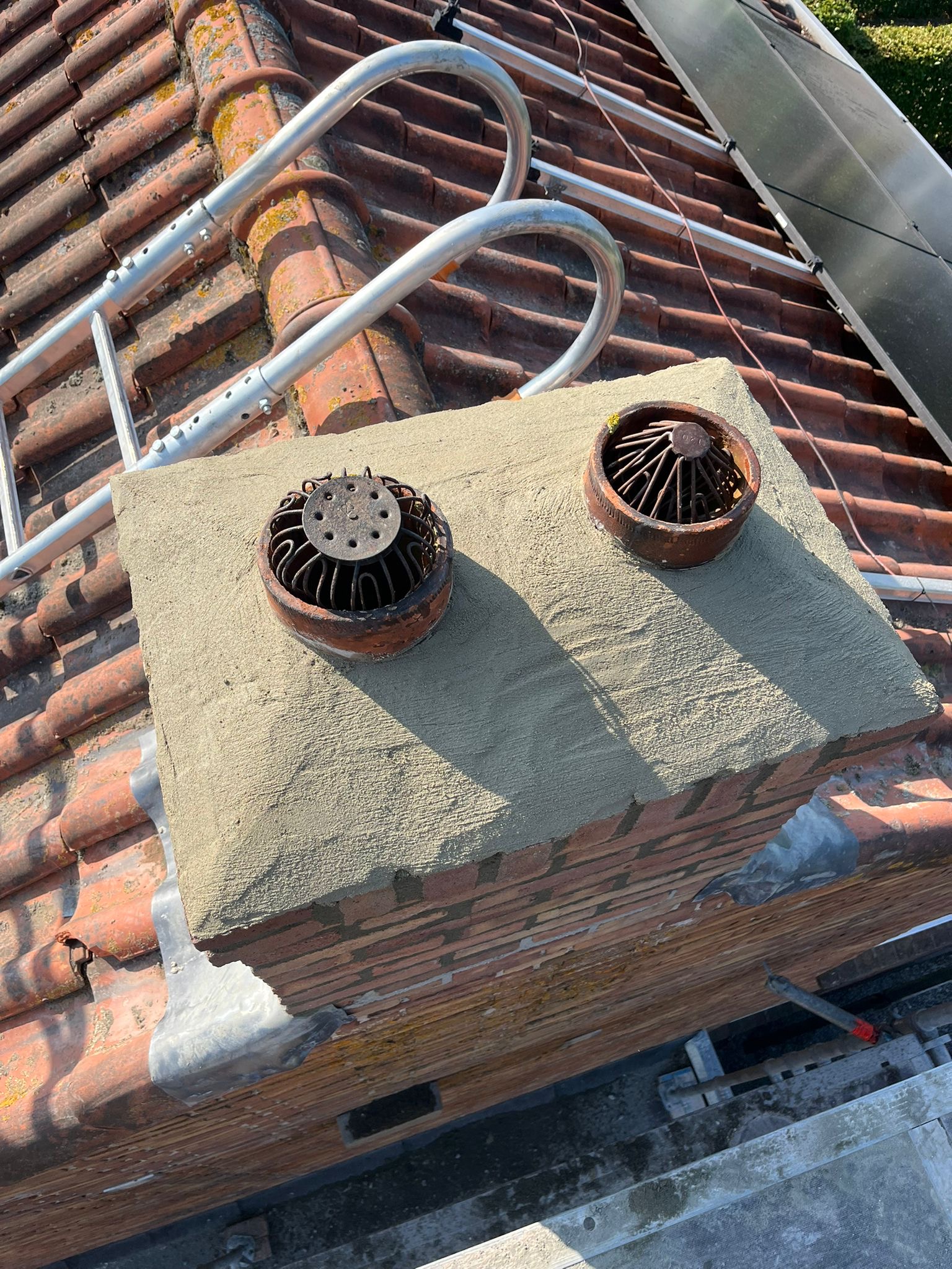 De bovenkant van de schoorsteen wordt meegenomen met het reinigen. (cement deklaag) mocht deze kapot zijn of beschadigd zijn dan zullen wij dit repareren of vervangen. Naderhand zullen wij de cement deklaag behandelen met fillcoat. Dit is een coating dit voorkomt dat regenkant via de bovenkant van de schoorsteen kan indringen. Het dak wordt na het beëindigen van de werkzaamheden weer schoon opgeleverd, incl. het schoonmaken van de dakgoten.