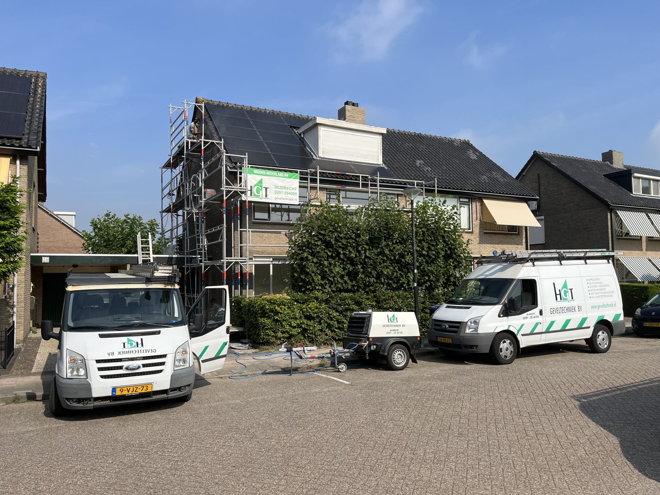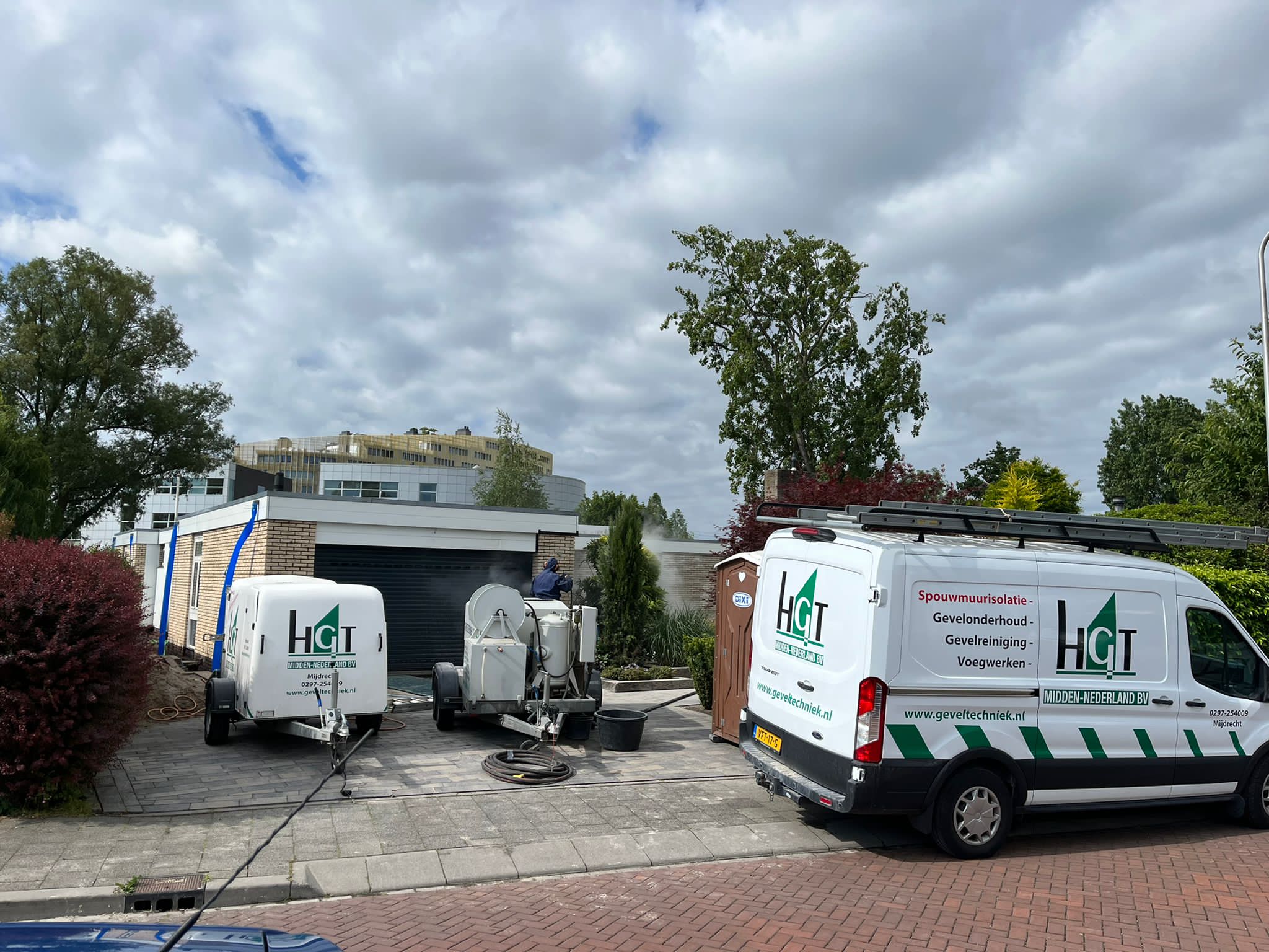 Het team van HGT heeft bij ons het voegwerk vervangen, de gevels gereinigd en geïmpregneerd. De communicatie verliep soepel en prettig. Ondanks dat door het herfstweer de planning uitliep, werden we goed op de hoogte gehouden van de waarschijnlijke start en eindtijd van de werkzaamheden. Doordat HGT met veel man aan de slag ging met het uithakken van het oude voegwerk, was de overlast ook tot een minimum beperkt.