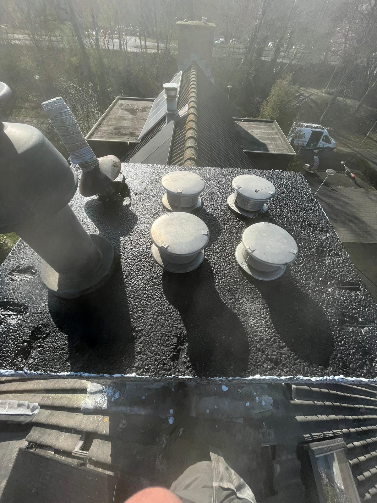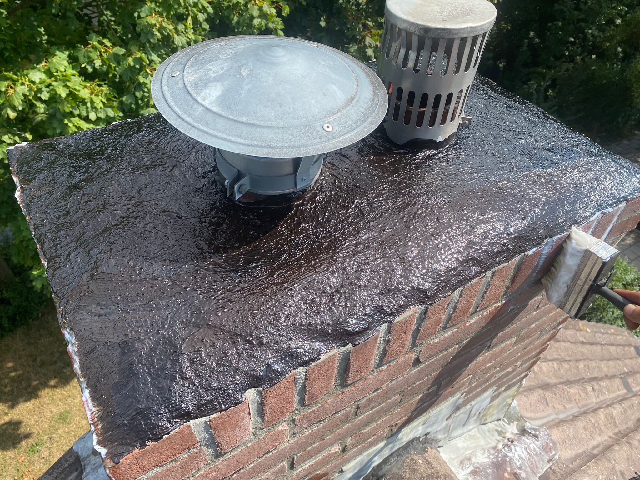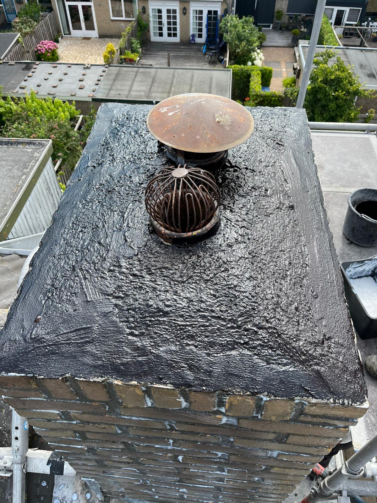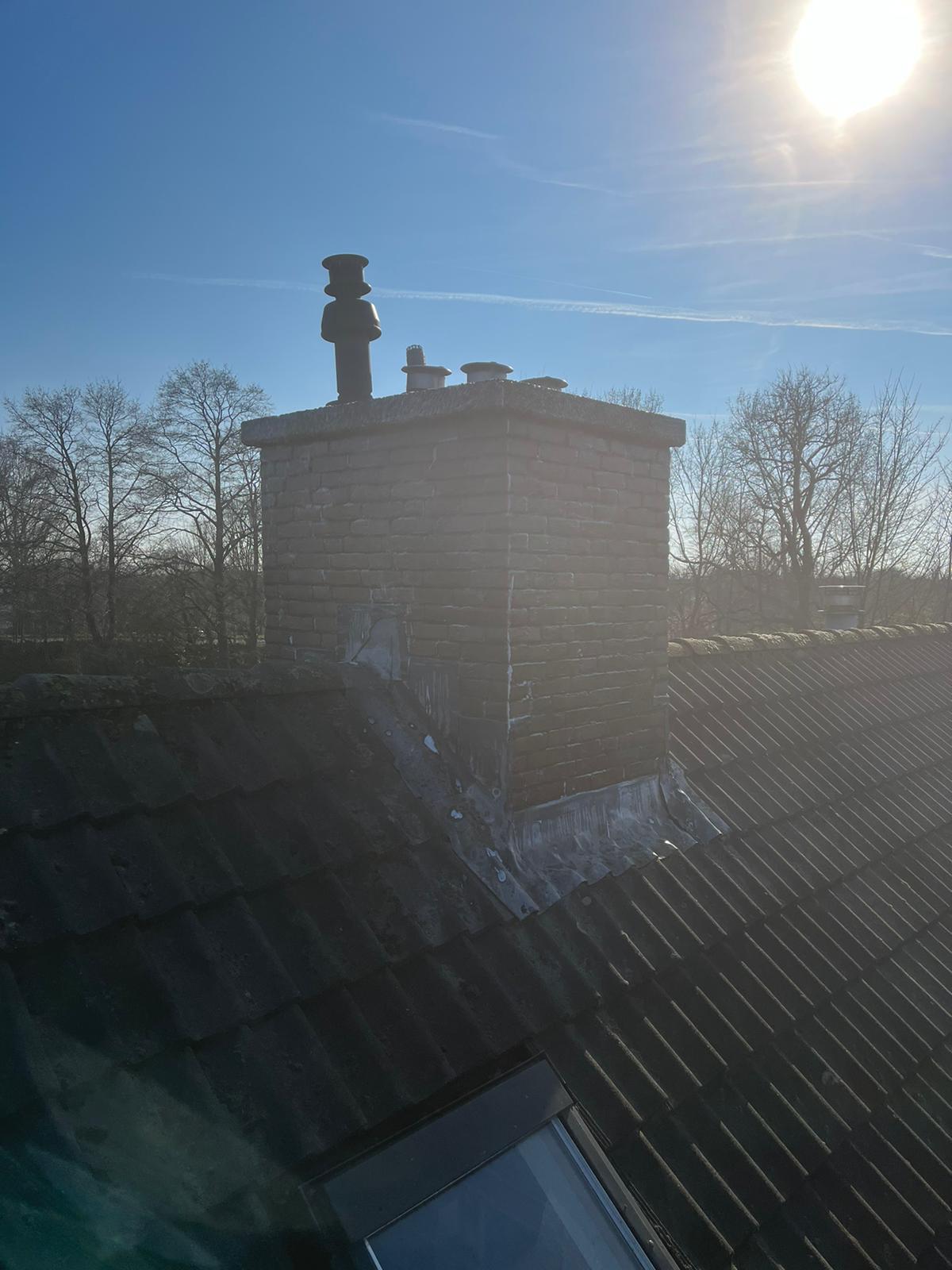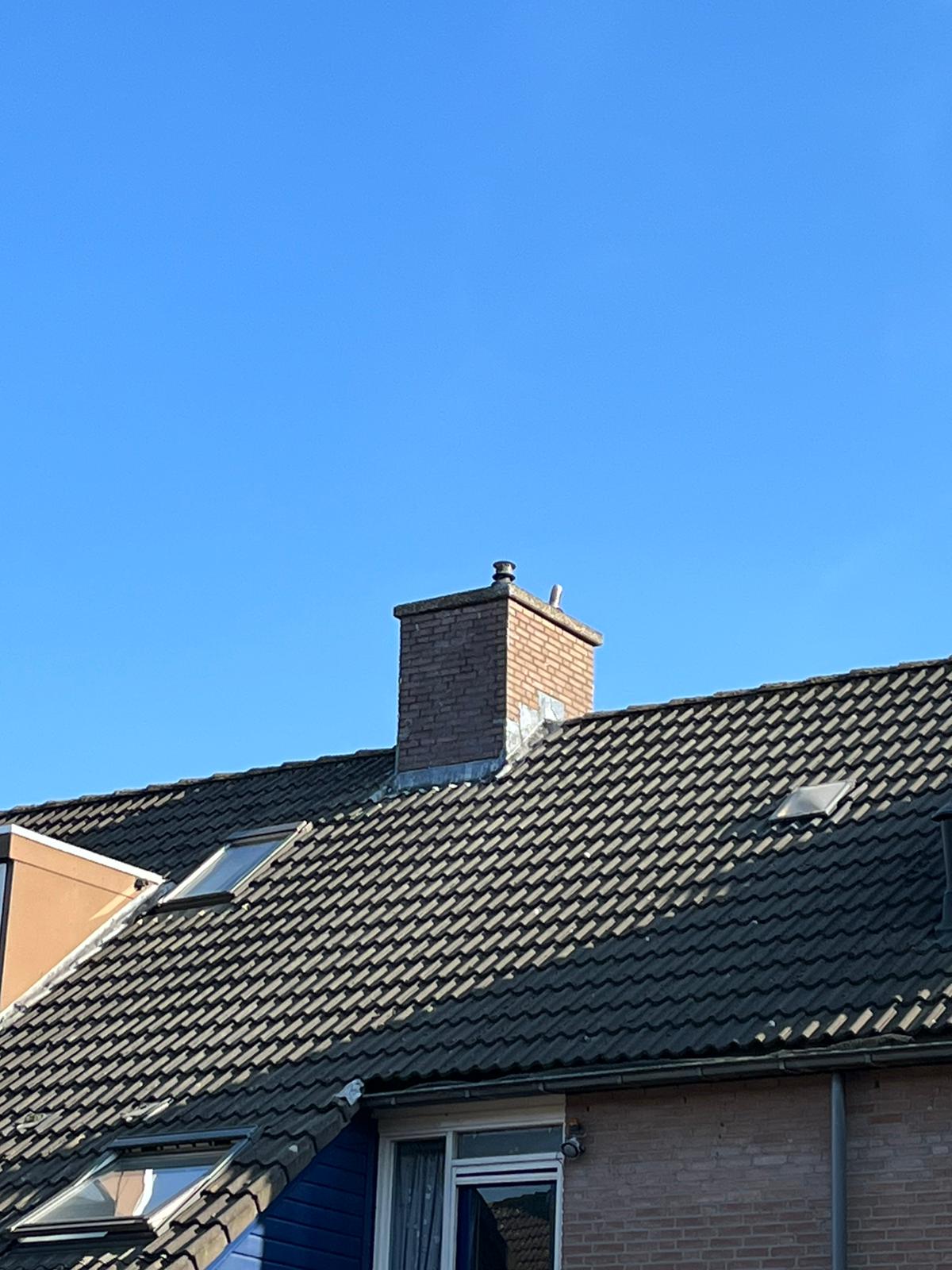 De bovenkant van de schoorsteen wordt meegenomen met het reinigen. (cement deklaag) Mocht deze kapot zijn of beschadigd zijn dan zullen wij dit repareren of vervangen. Naderhand zullen wij de cement deklaag behandelen met fillcoat. Dit is een coating dit voorkomt dat regenkant via de bovenkant van de schoorsteen kan indringen. Het dak wordt na het beëindigen van de werkzaamheden weer schoon opgeleverd, incl. het schoonmaken van de dakgoten.