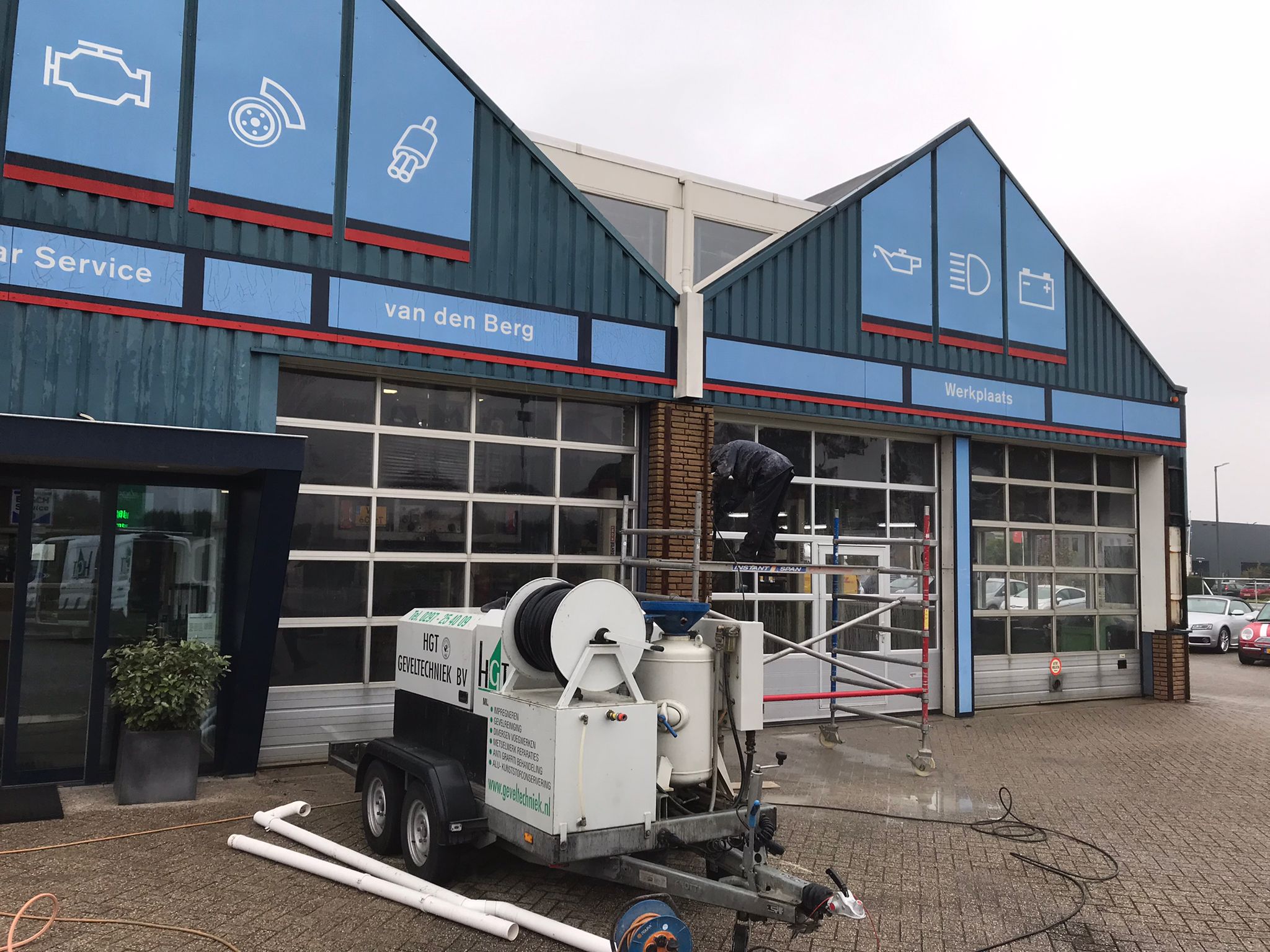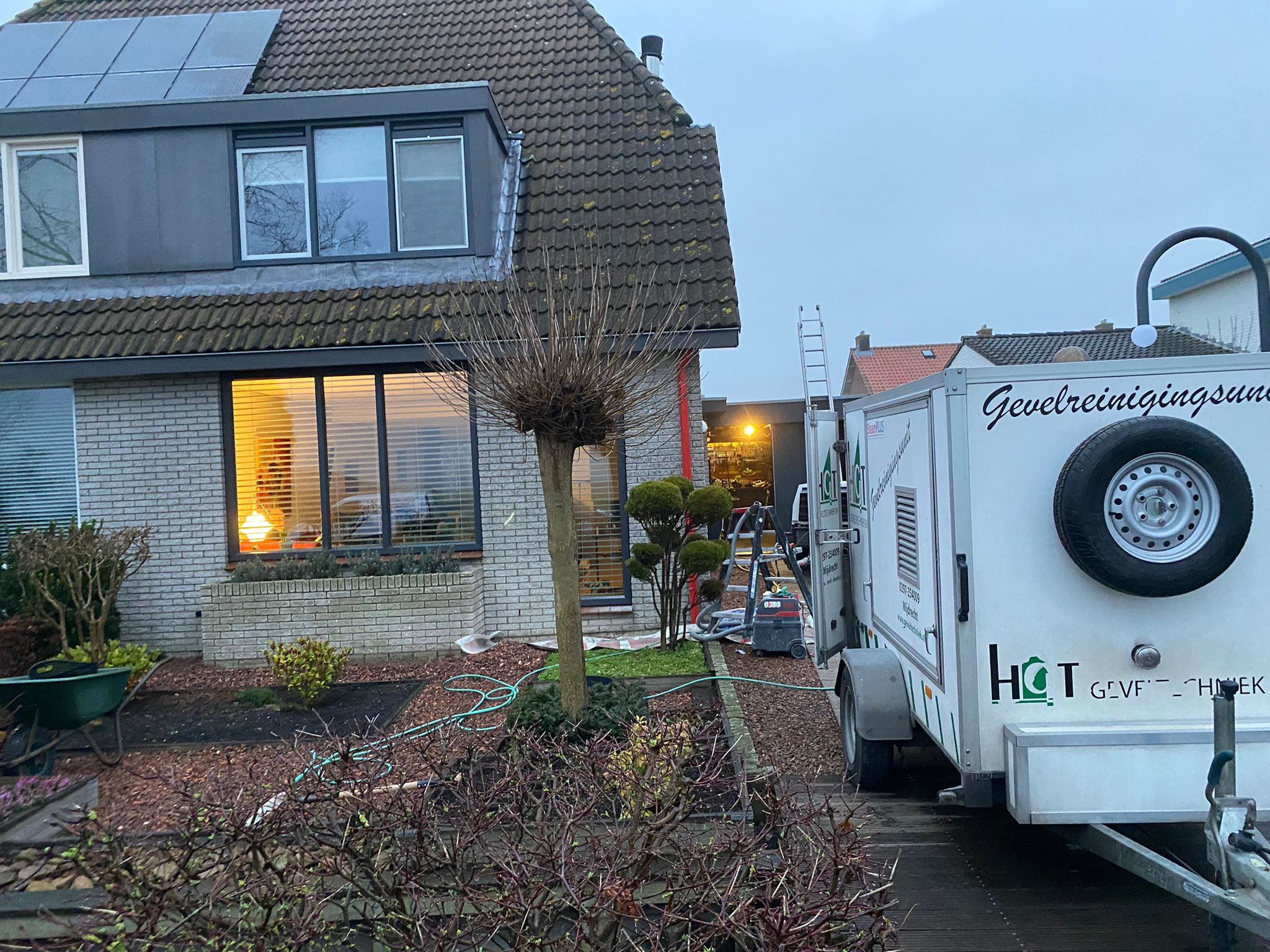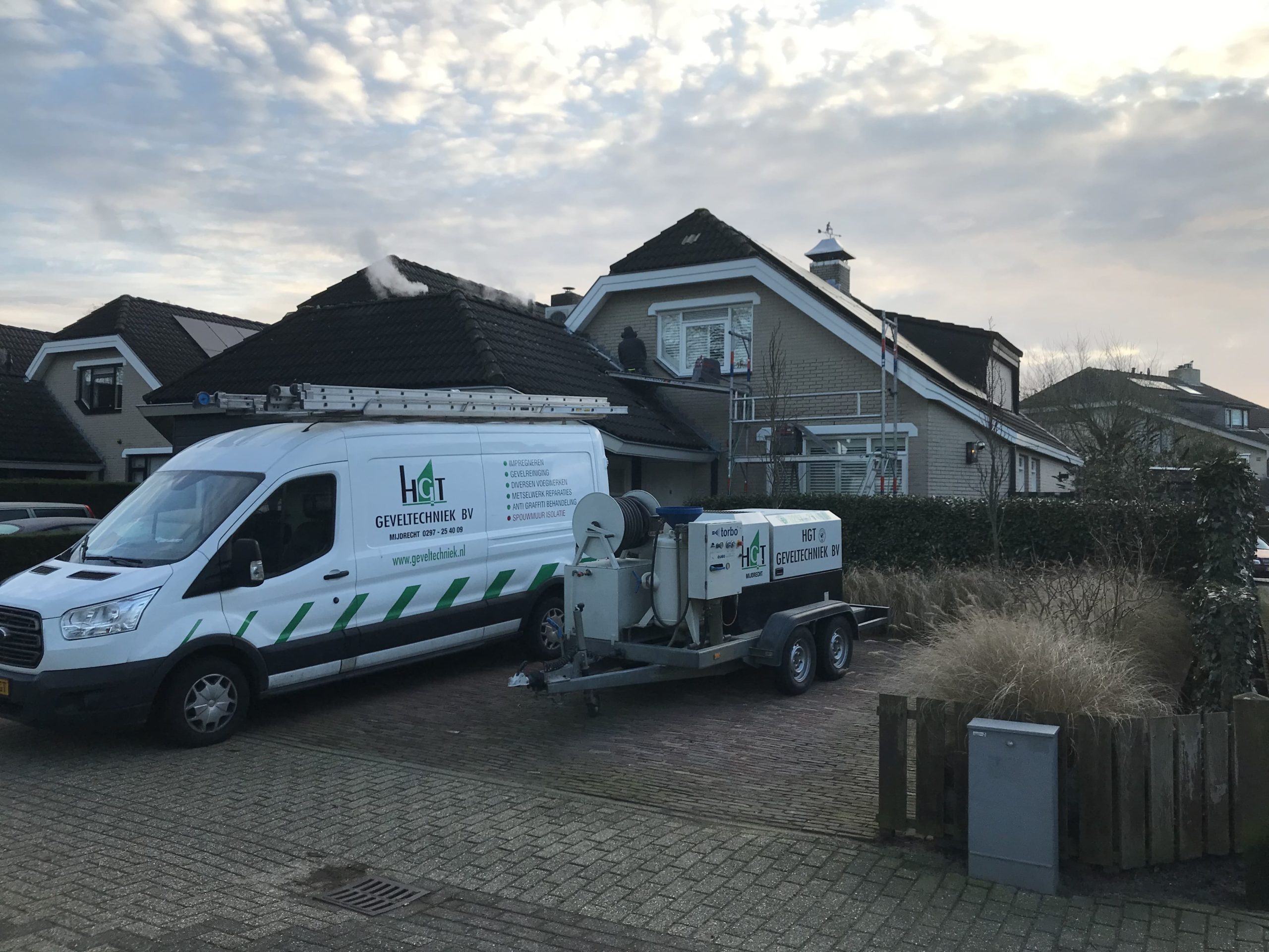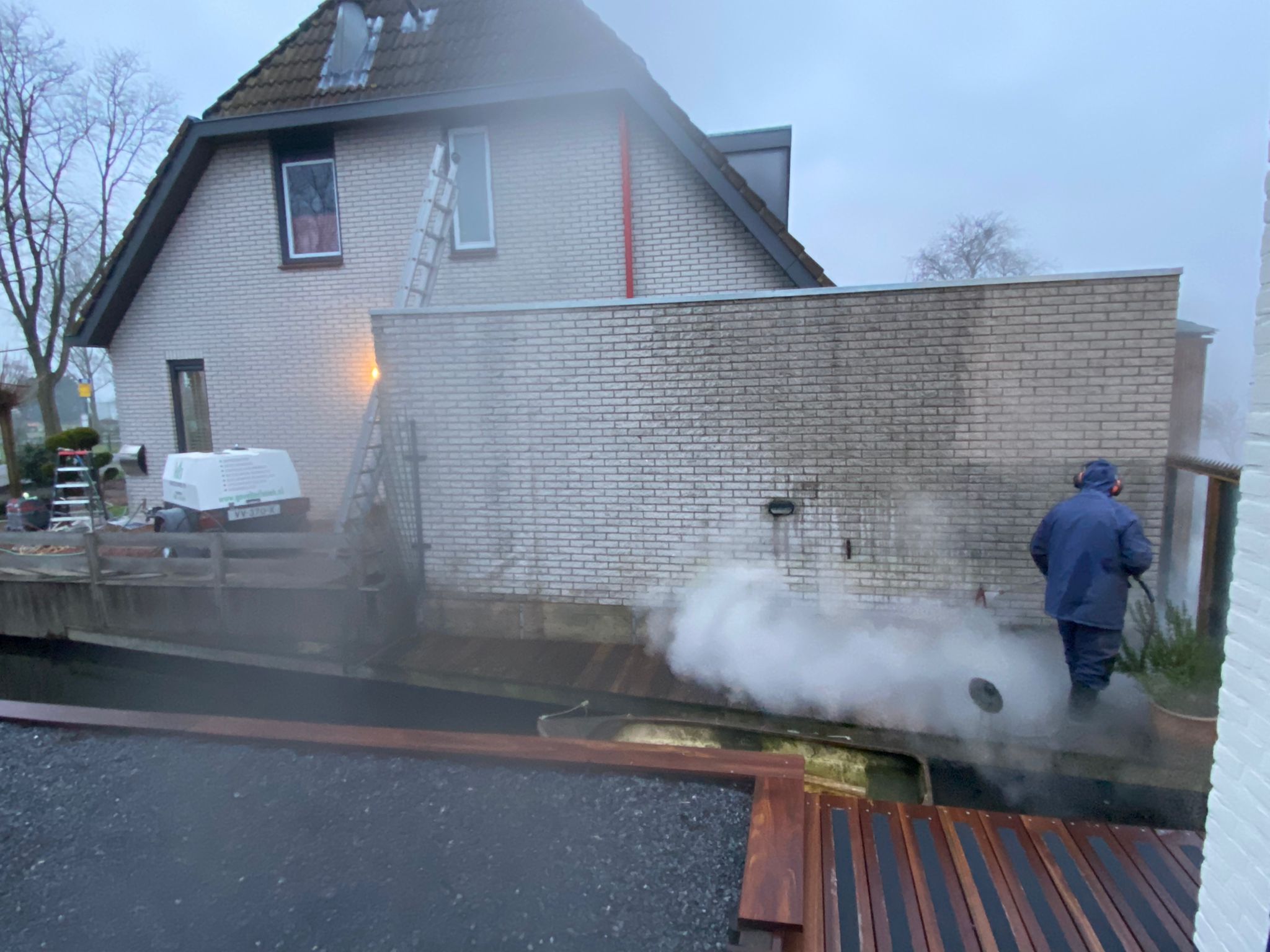 1) Het HD-reinigen van alle geveldelen van het woonhuis en aanbouw (d.m.v. steam+ reinigen)
