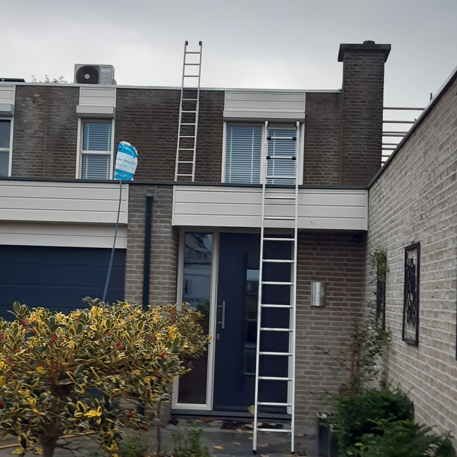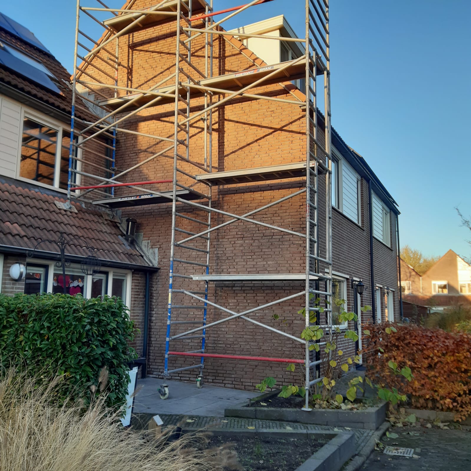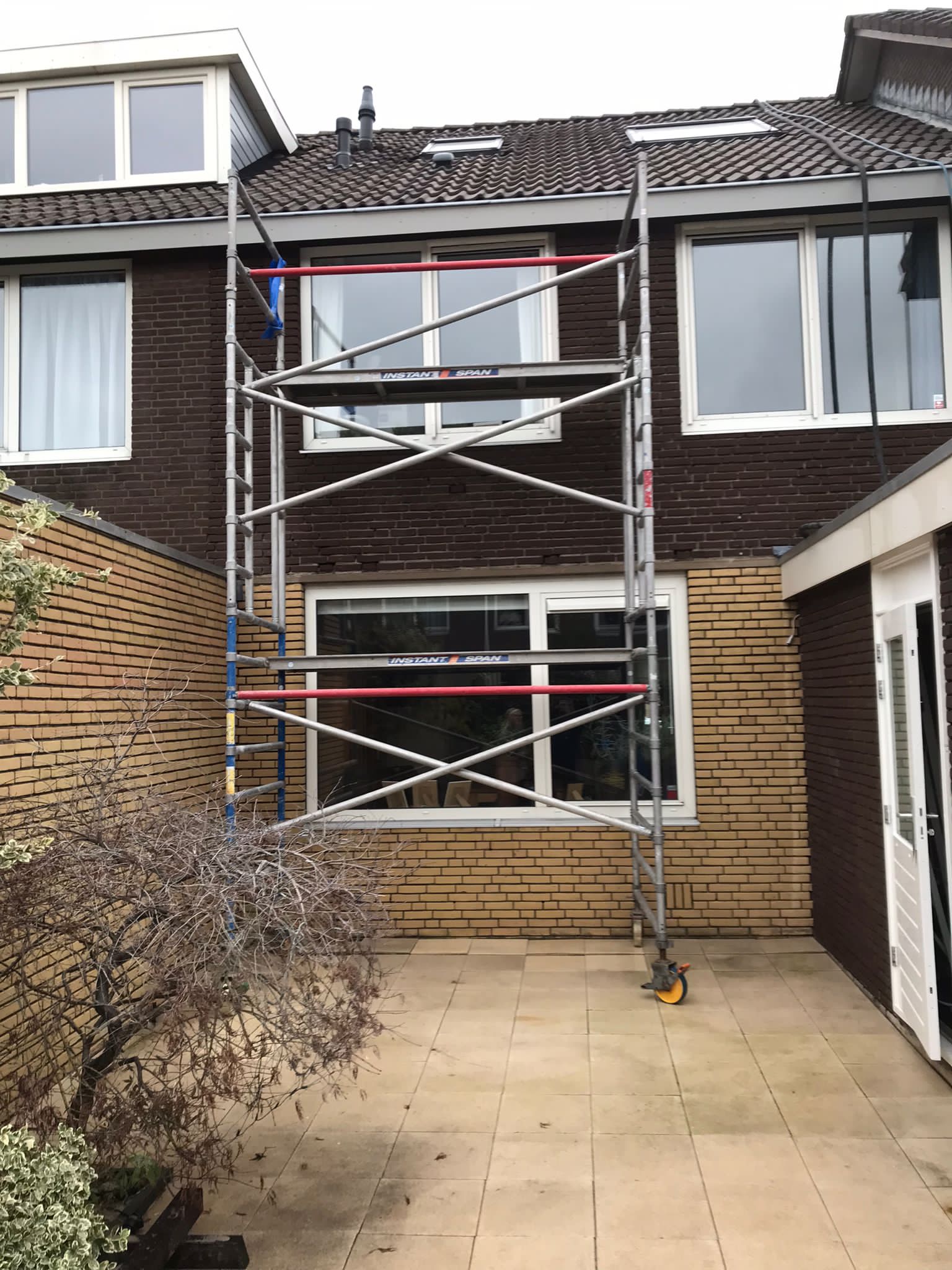 Voor aanvang van de werkzaamheden zullen wij beginnen met het toegankelijk maken van de schoorsteen. Dit wordt gedaan d.m.v. steigers en hangladders zodat wij via deze ladders bij de schoorstenen kunnen komen.
