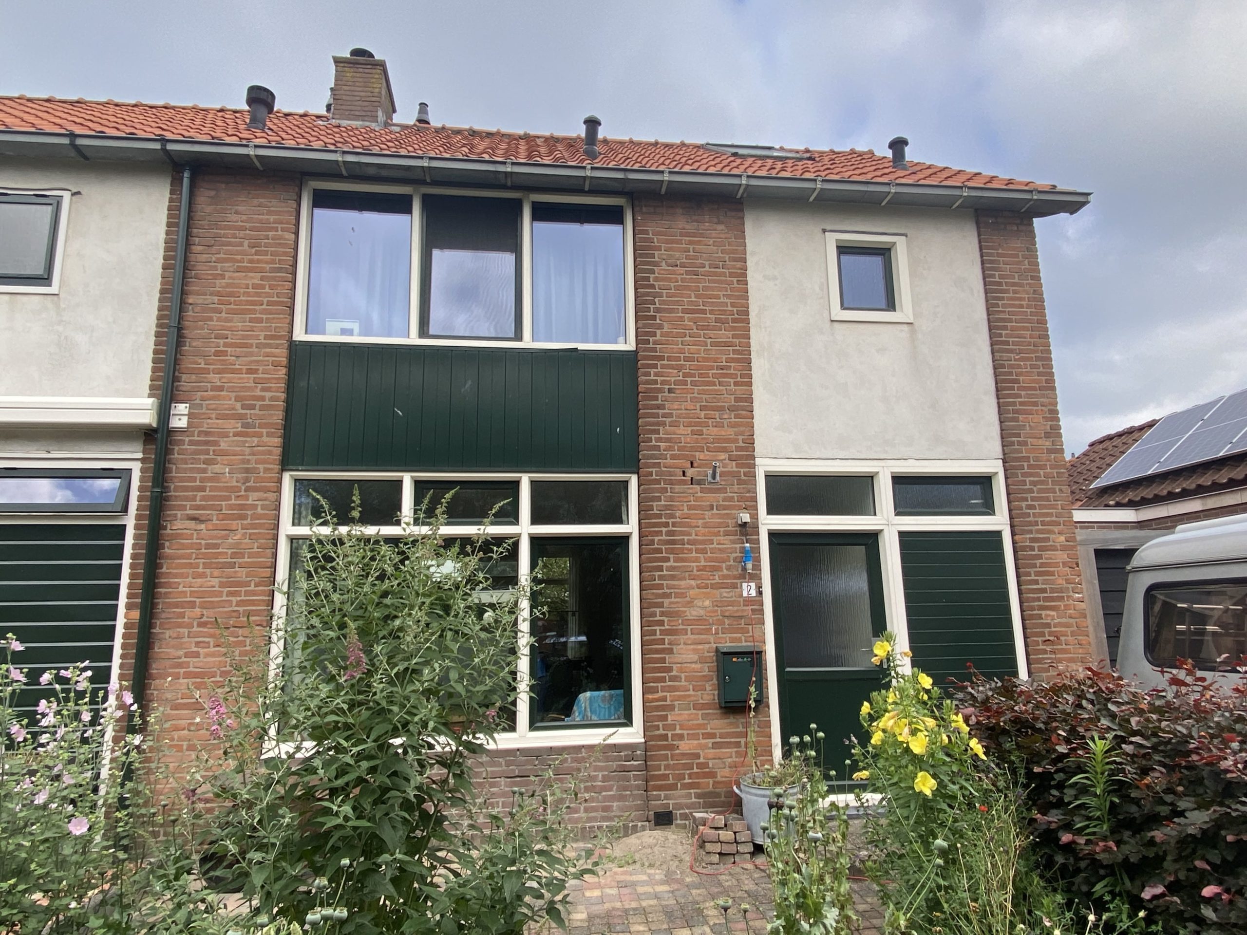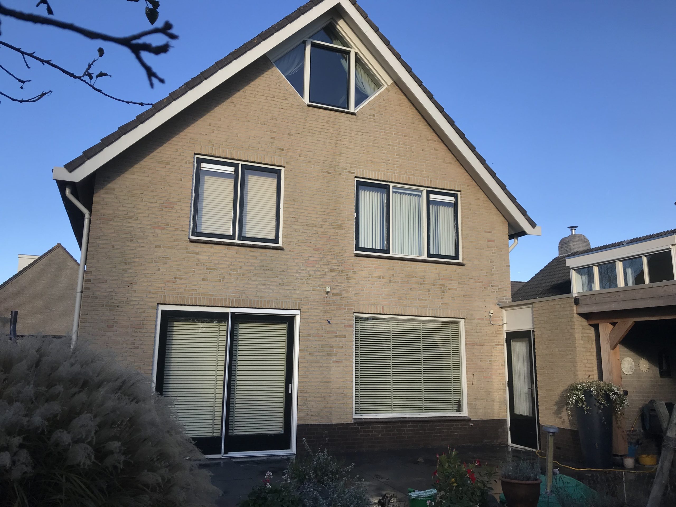 3) Het uithakken en opnieuw voegen aan de voorgevel en rechter zijgevel van het woonhuis. (d.m.v. stofvrije afzuigingen)
