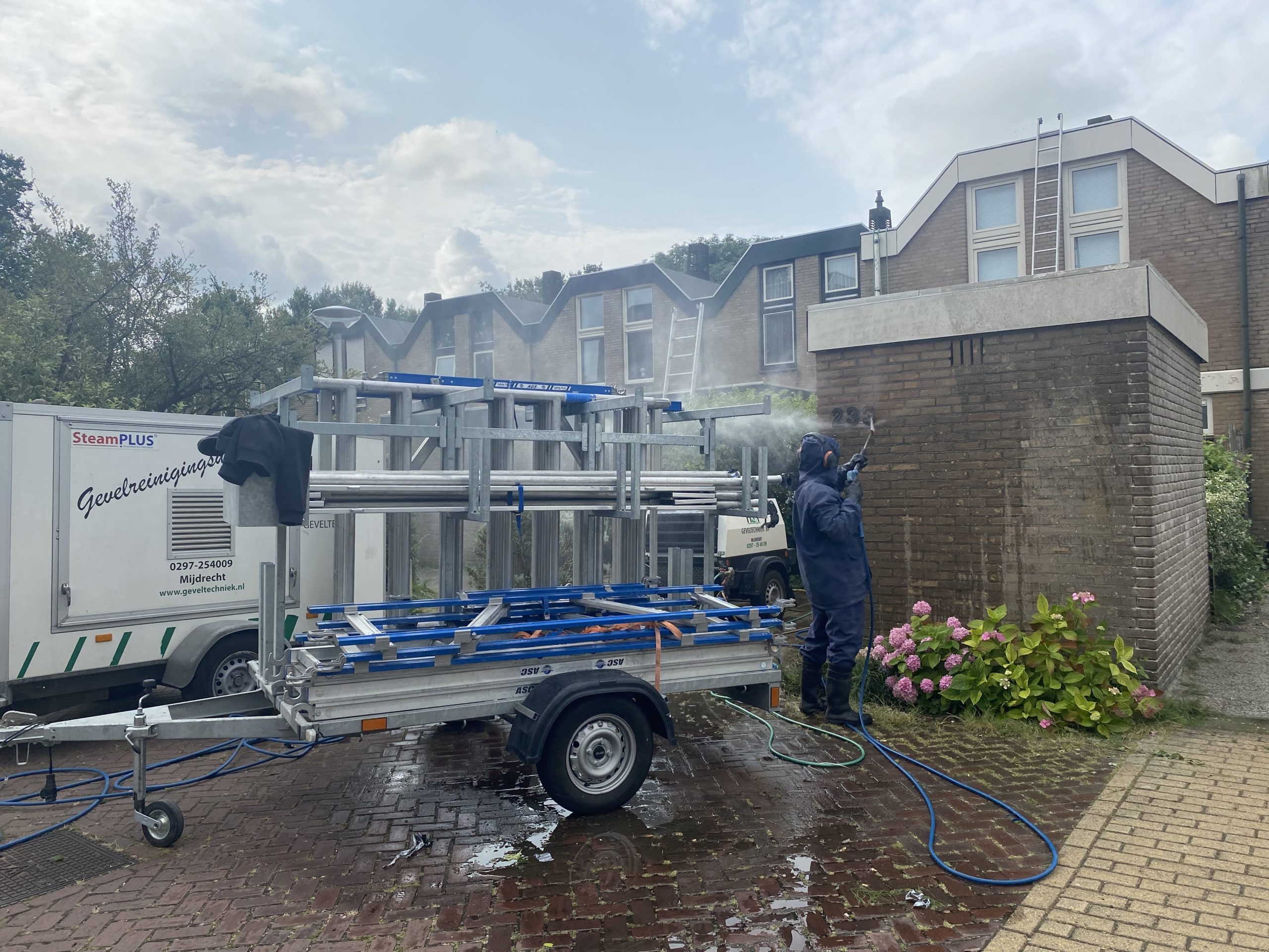 2) HD-reinigen van alle geveldelen van het woonhuis, scheidingsmuur en van de berging. (d.m.v. steam + reinigen)