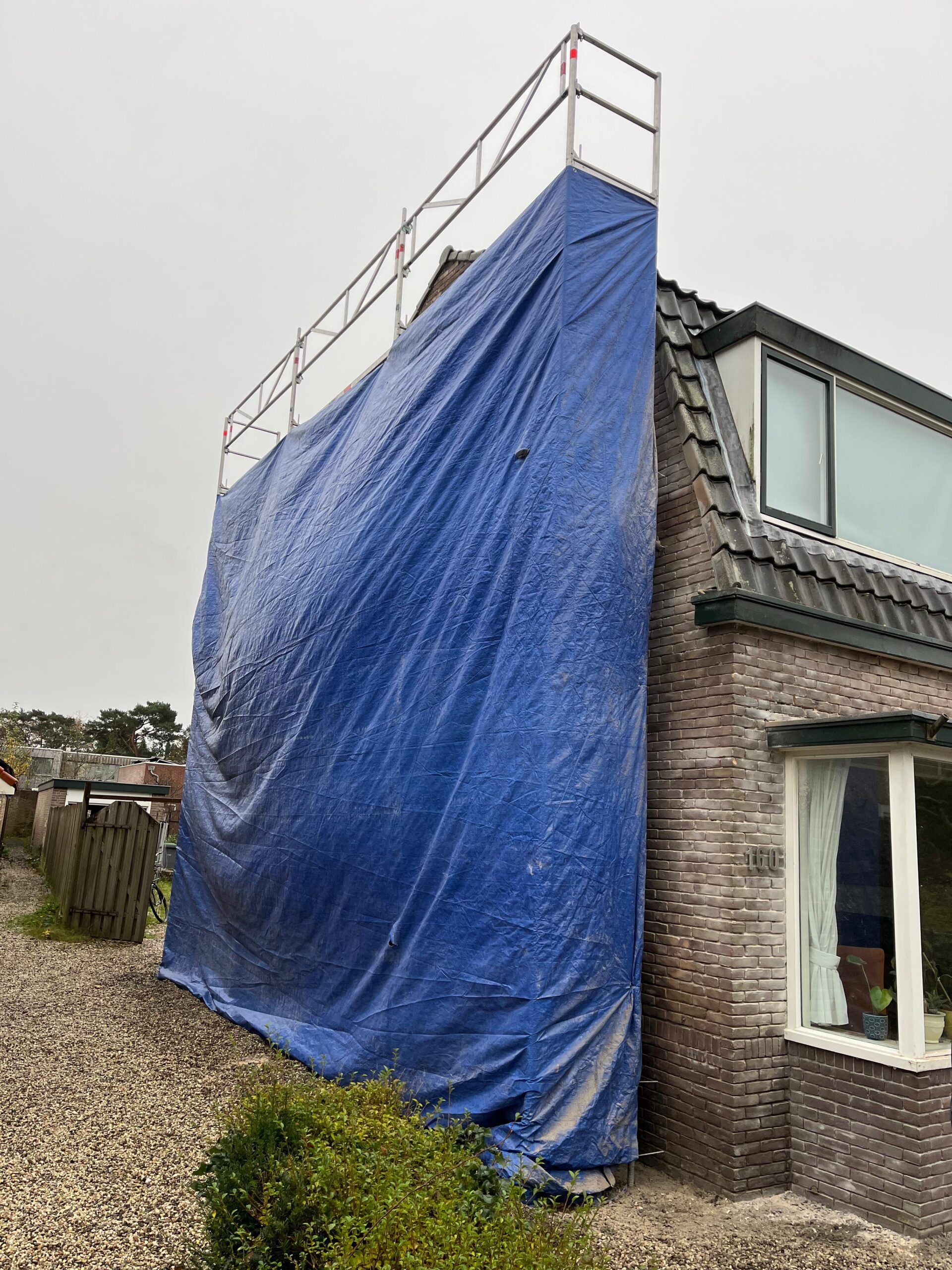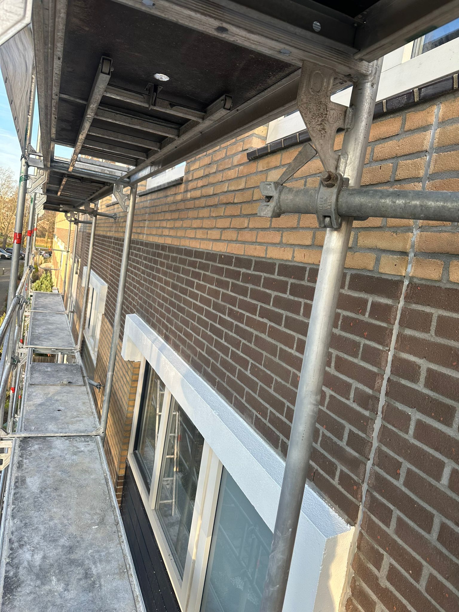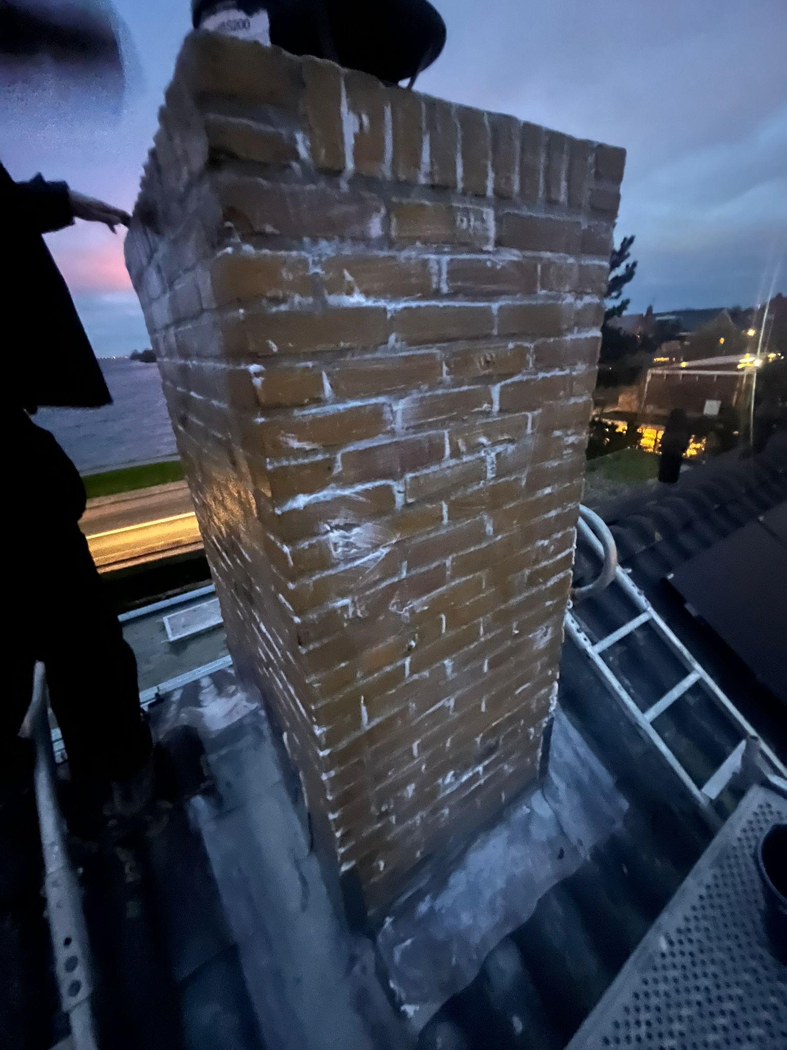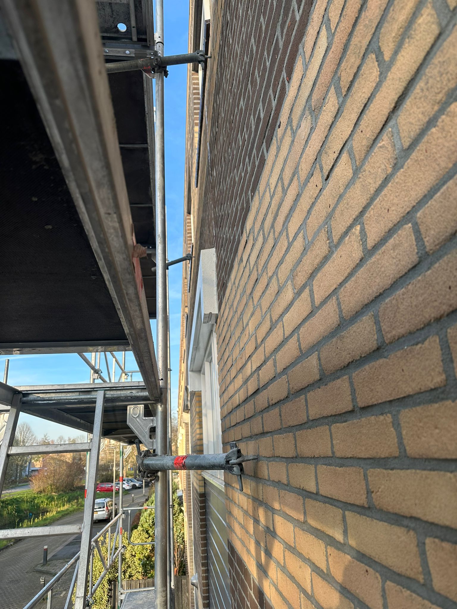 Voor aanvang van de werkzaamheden zullen wij beginnen met het toegankelijk maken van de schoorsteen. Dit wordt gedaan d.m.v. steigers en hangladders zodat wij via deze ladders bij de schoorstenen kunnen komen.