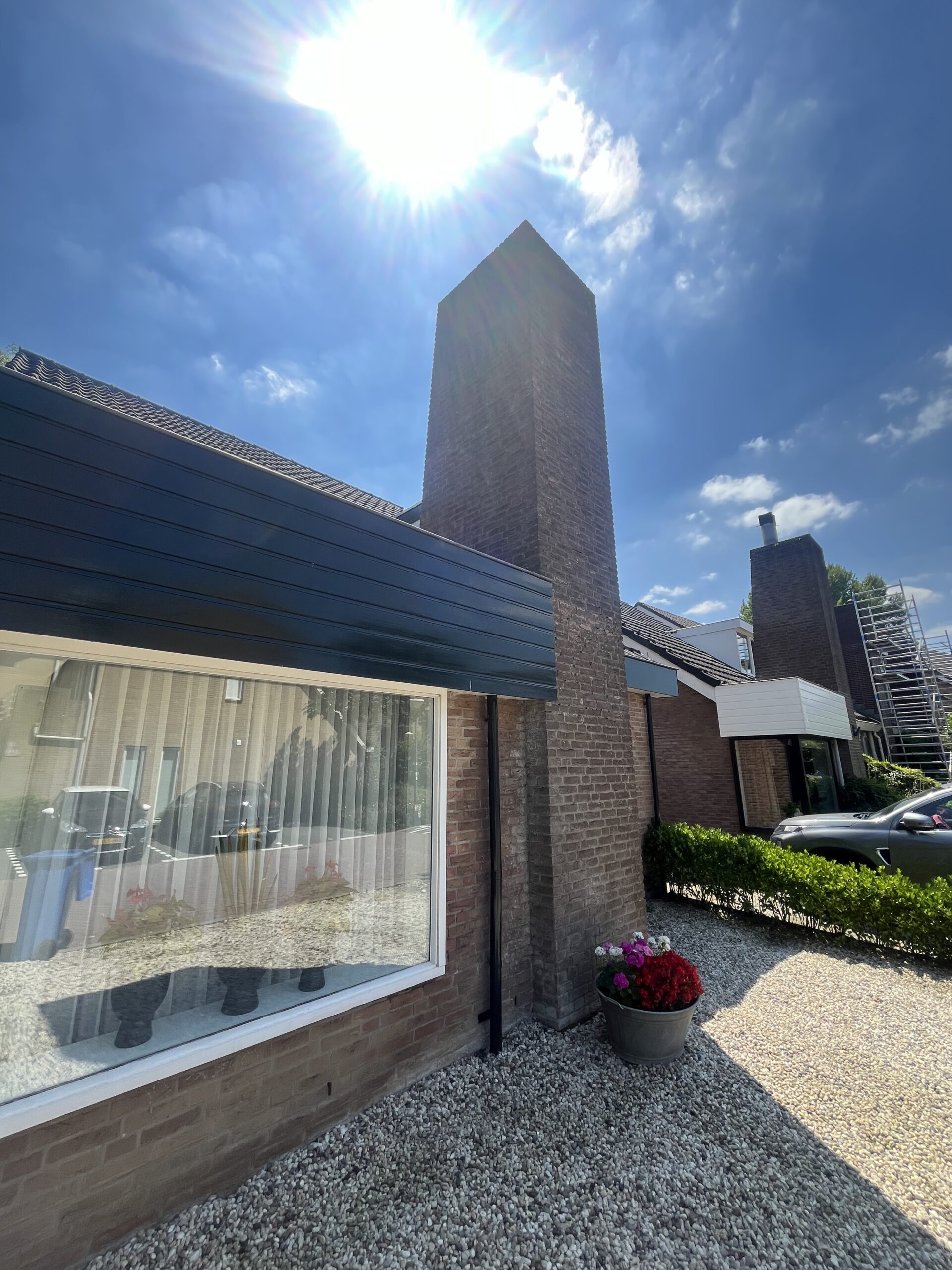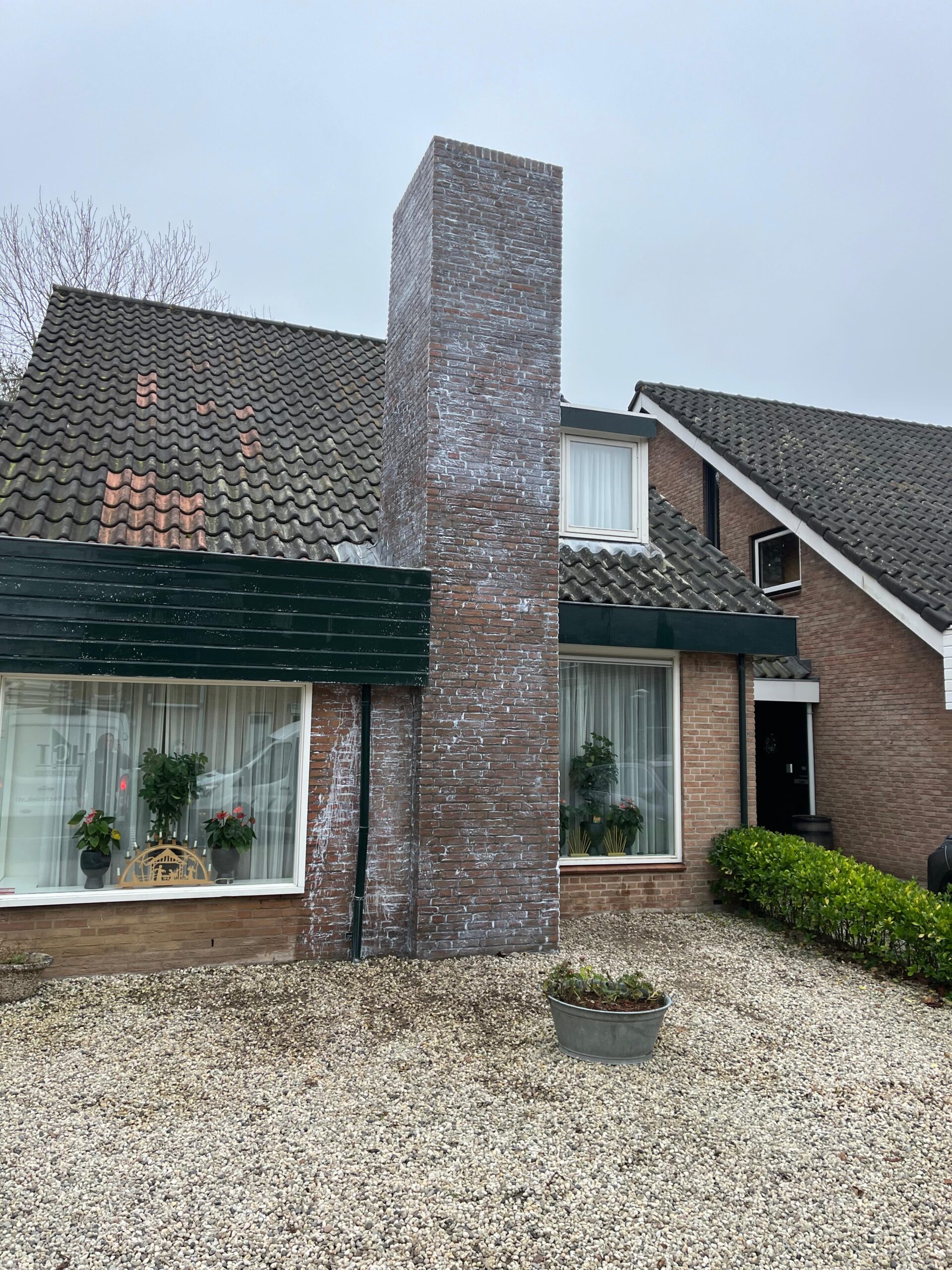 Het metselwerk van de schoorsteen zullen wij reinigen d.m.v. HD- reinigen (zie werkomschrijving 2)