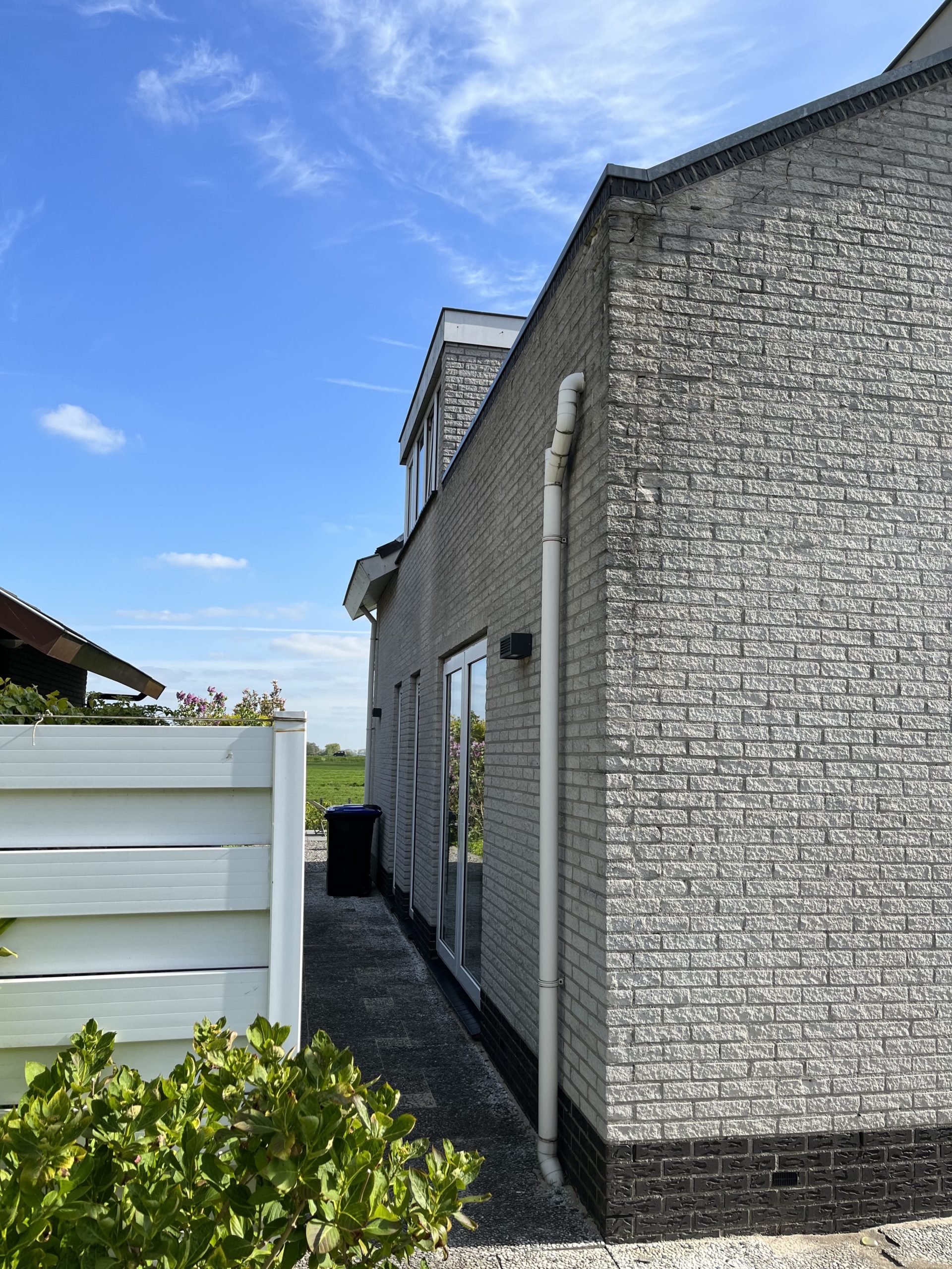 1) HD-reinigen van het metselwerk van de woning (voorgevel en linker zijgevel + balkon). (d.m.v. steam + reinigen)