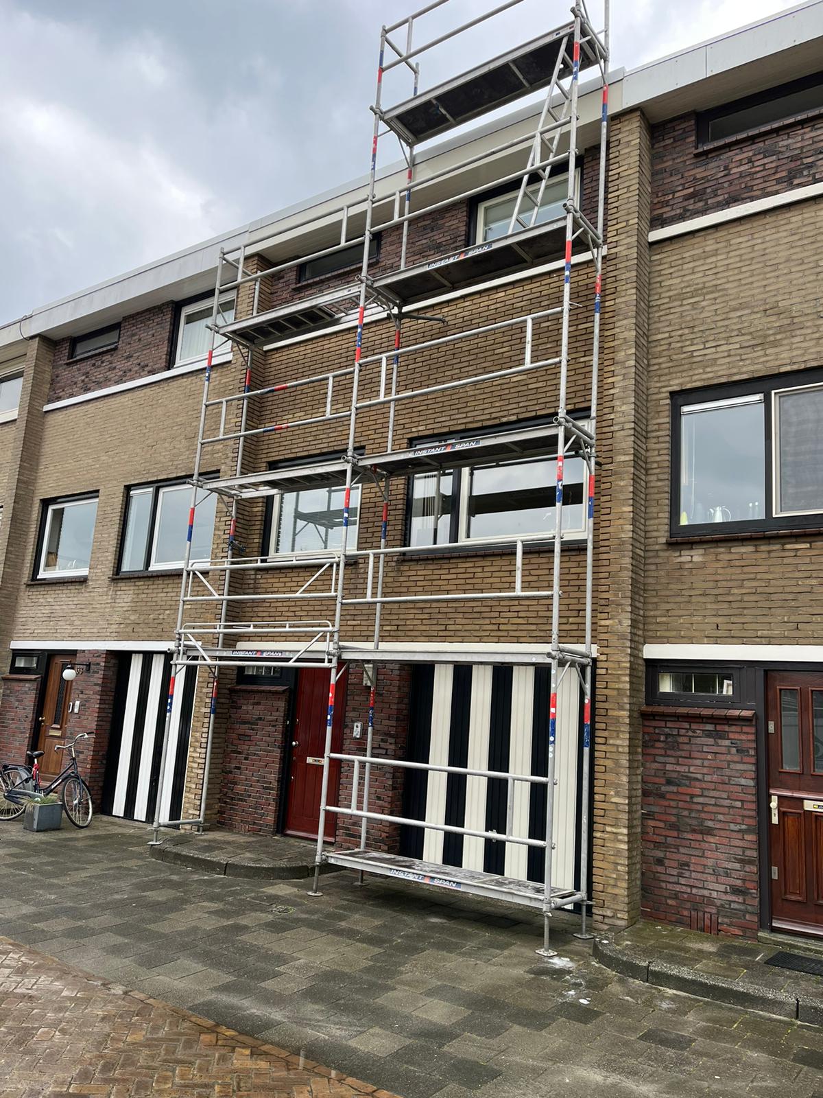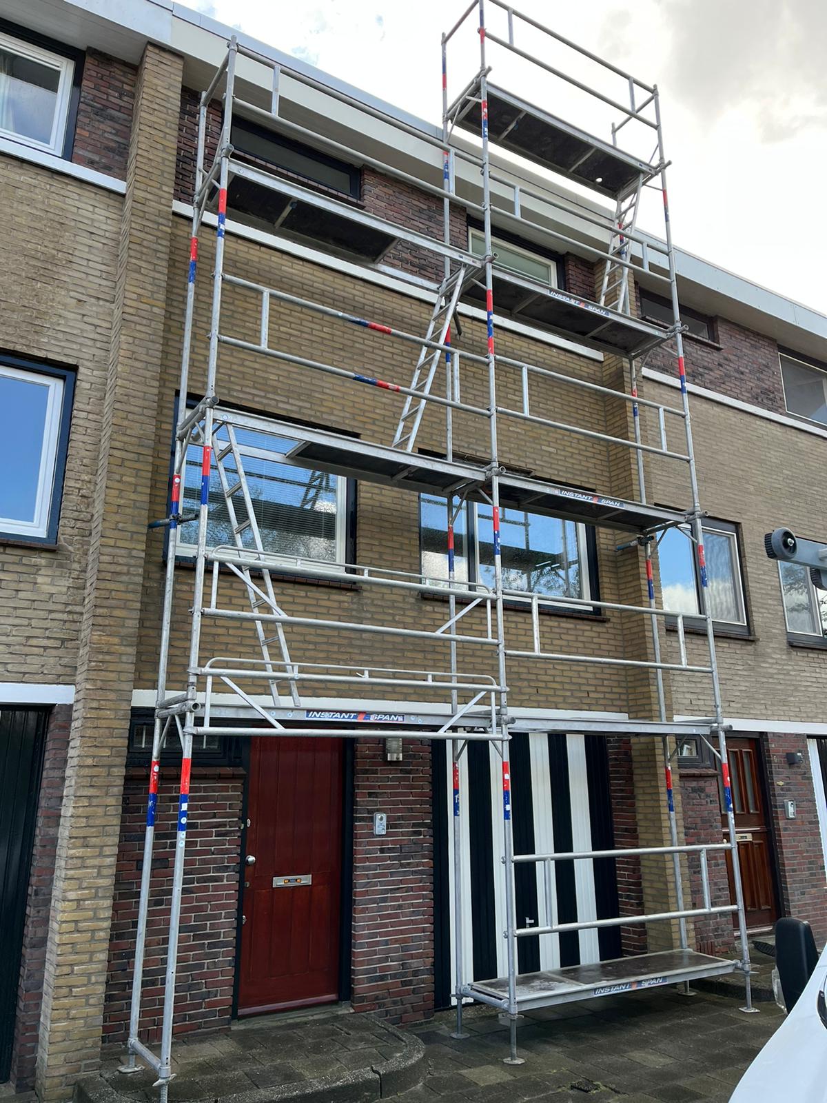 Voor aanvang van de werkzaamheden zullen wij beginnen met het toegankelijk maken van de schoorsteen. Dit wordt gedaan d.m.v. steigers en hangladders zodat wij via deze ladders bij de schoorstenen kunnen komen.