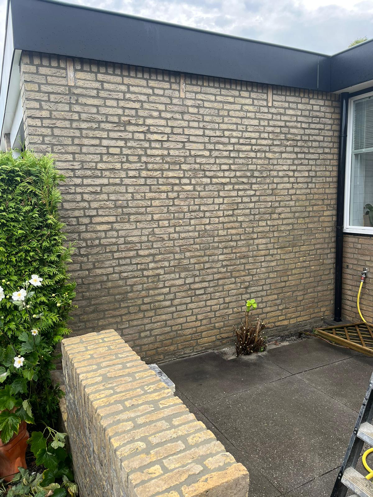 1) Het HD-reinigen van al het metselwerk van het woonhuis. (d.m.v. steam+ reinigen)