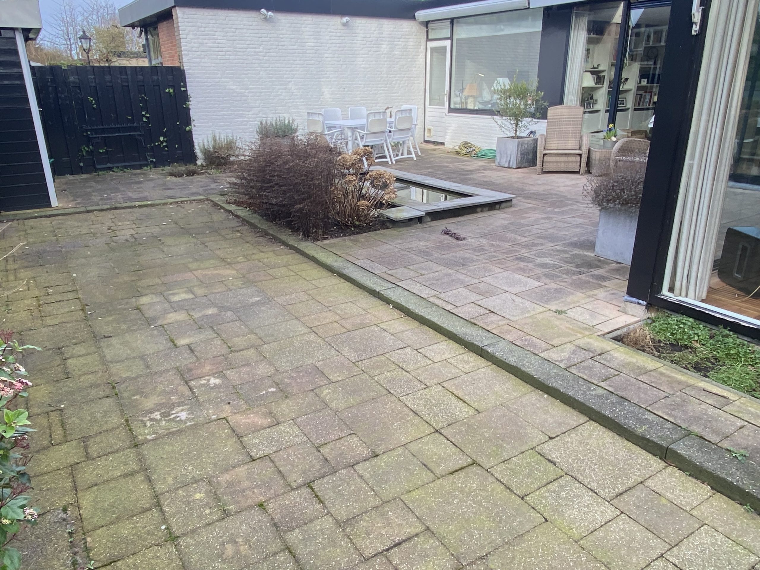 4) De terrassen rondom het woonhuis behandelen met een algen en mos dodend middel. (d.m.v. algen en mossen verwijderen)