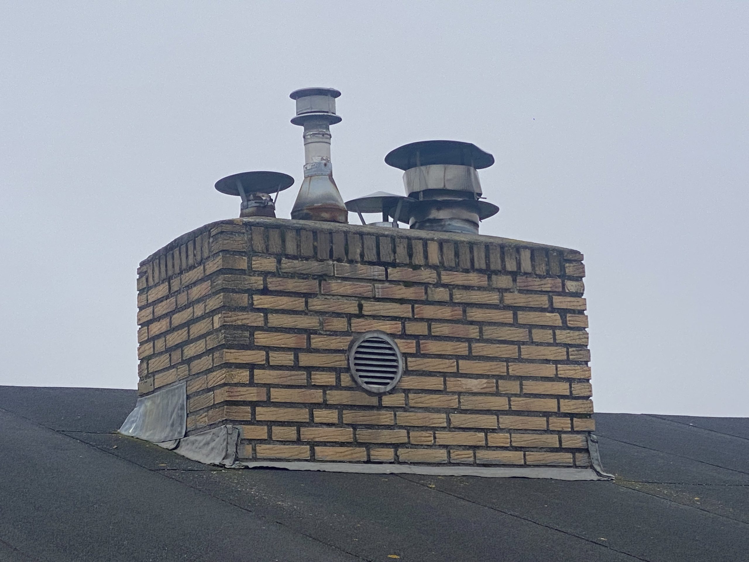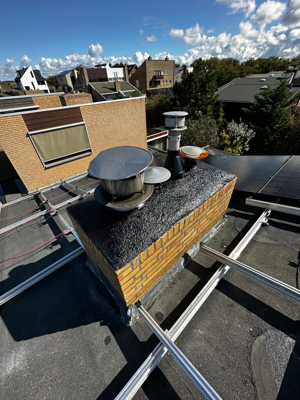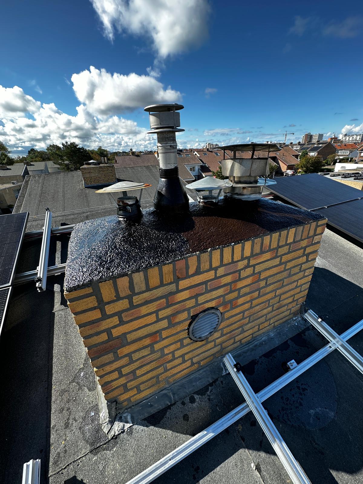 3) Het uithakken/slijpen, HD-reinigen, opnieuw voegen, impregneren en afmeren van de schoorsteen. (schoorsteen onderhoud)