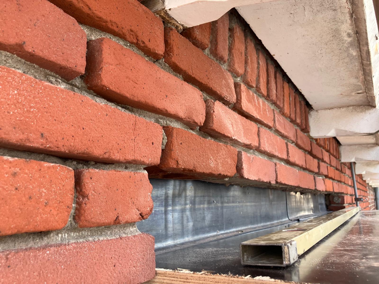 4) Het uithakken/slijpen, HD-reinigen, opnieuw voegen, impregneren en afmeren van de schoorstenen. (schoorsteen onderhoud)
