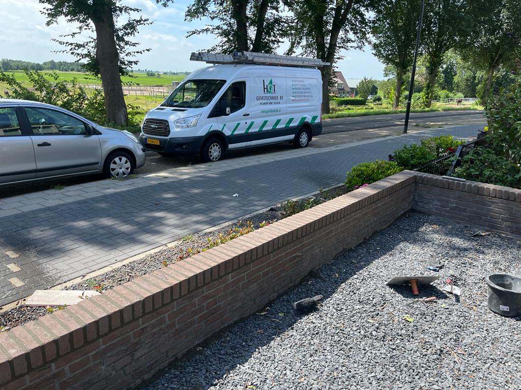 1) Het bestaande voegwerk van de voorgevel + rollaag tuinmuur uithakken en opnieuw voegwerk aanbrengen. (d.m.v. stof-arm afzuigingen)