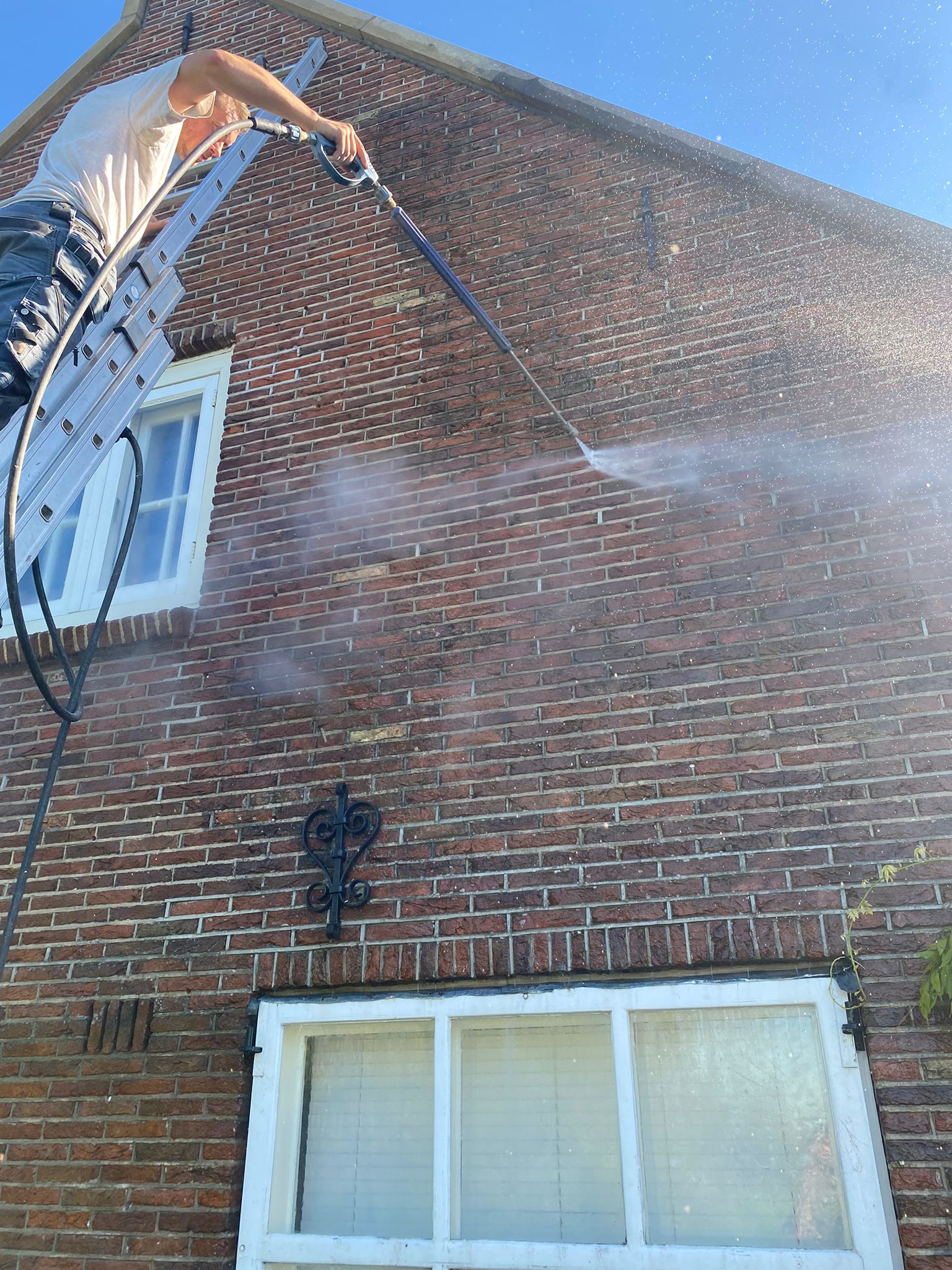 1) Het HD- reinigen van het metselwerk van de gehele woning. (d.m.v. steam+ reinigen)