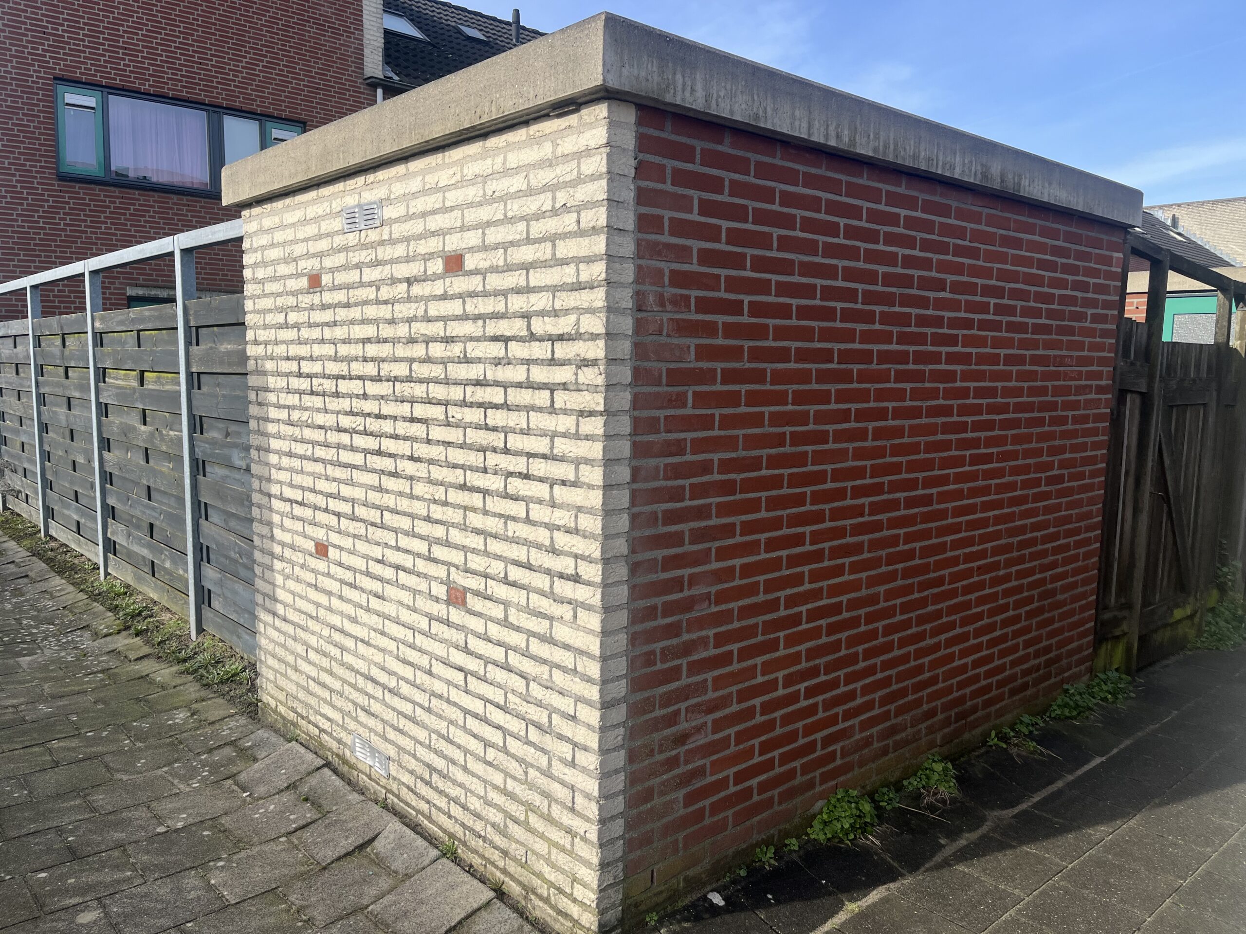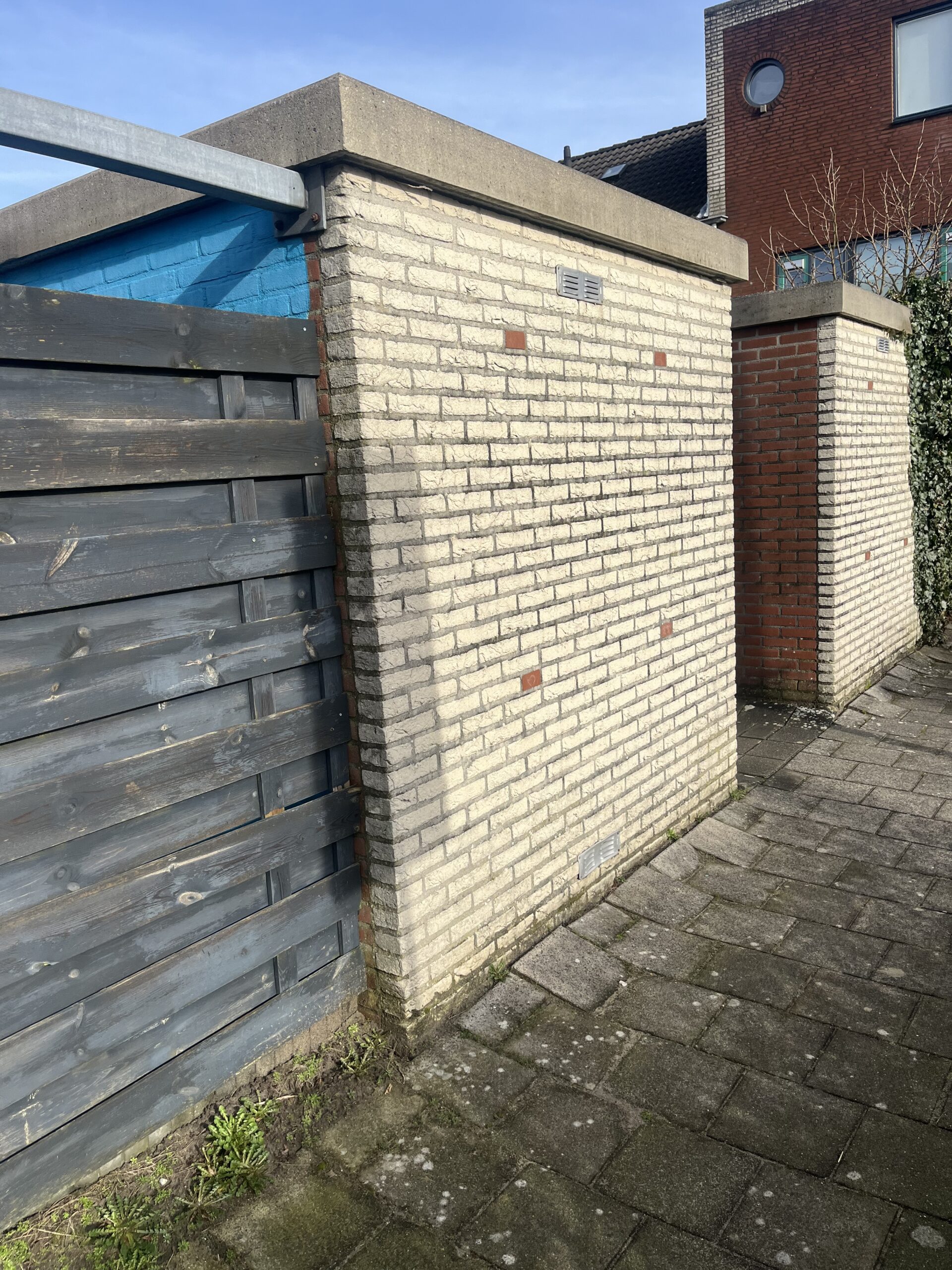 1) Het HD- reinigen van het metselwerk. Berging + 2 roosters dicht zetten (d.m.v. steam+ reinigen)