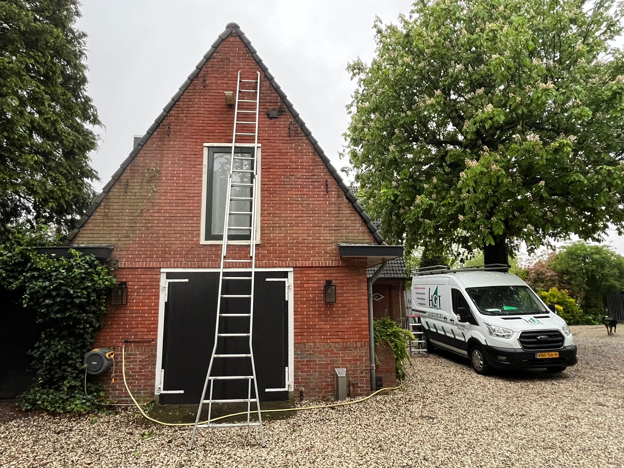 1) Het HD- reinigen van het metselwerk. Voorgevel en achtergevel en 2 zijgevels (d.m.v. steam+ reinigen)