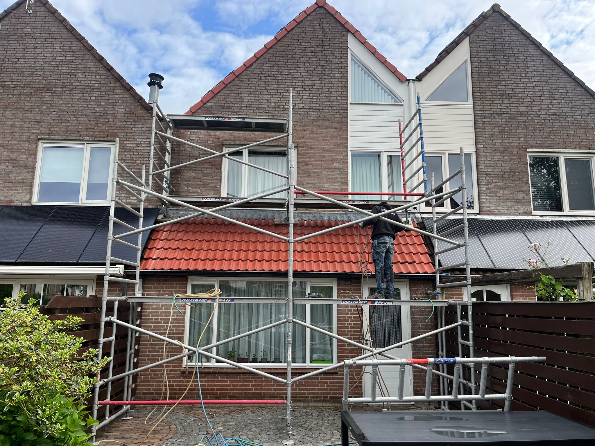 Voor aanvang van de werkzaamheden zullen wij beginnen met het toegankelijk maken van de schoorsteen. Dit wordt gedaan d.m.v. steigers en hangladders zodat wij via deze ladders bij de schoorstenen kunnen komen.