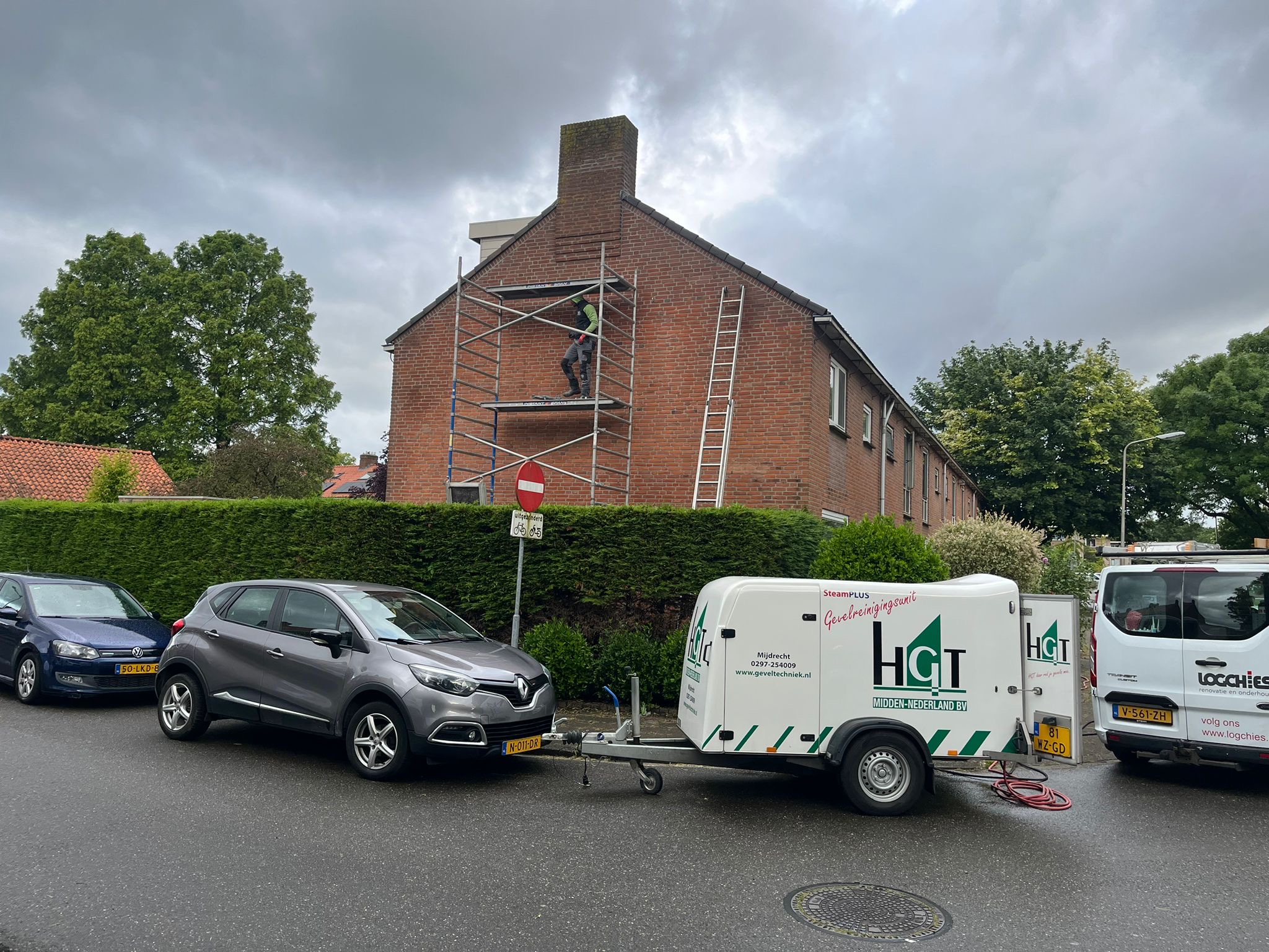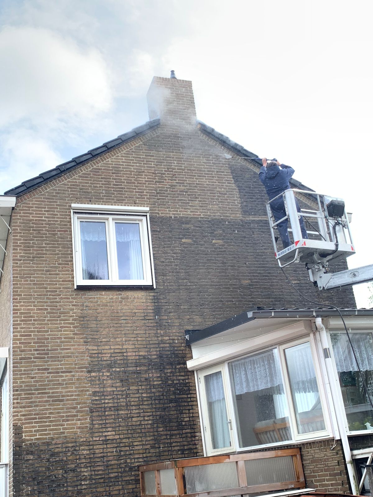 Het metselwerk van de schoorsteen zullen wij reinigen d.m.v. HD- reinigen (zie werkomschrijving 2)