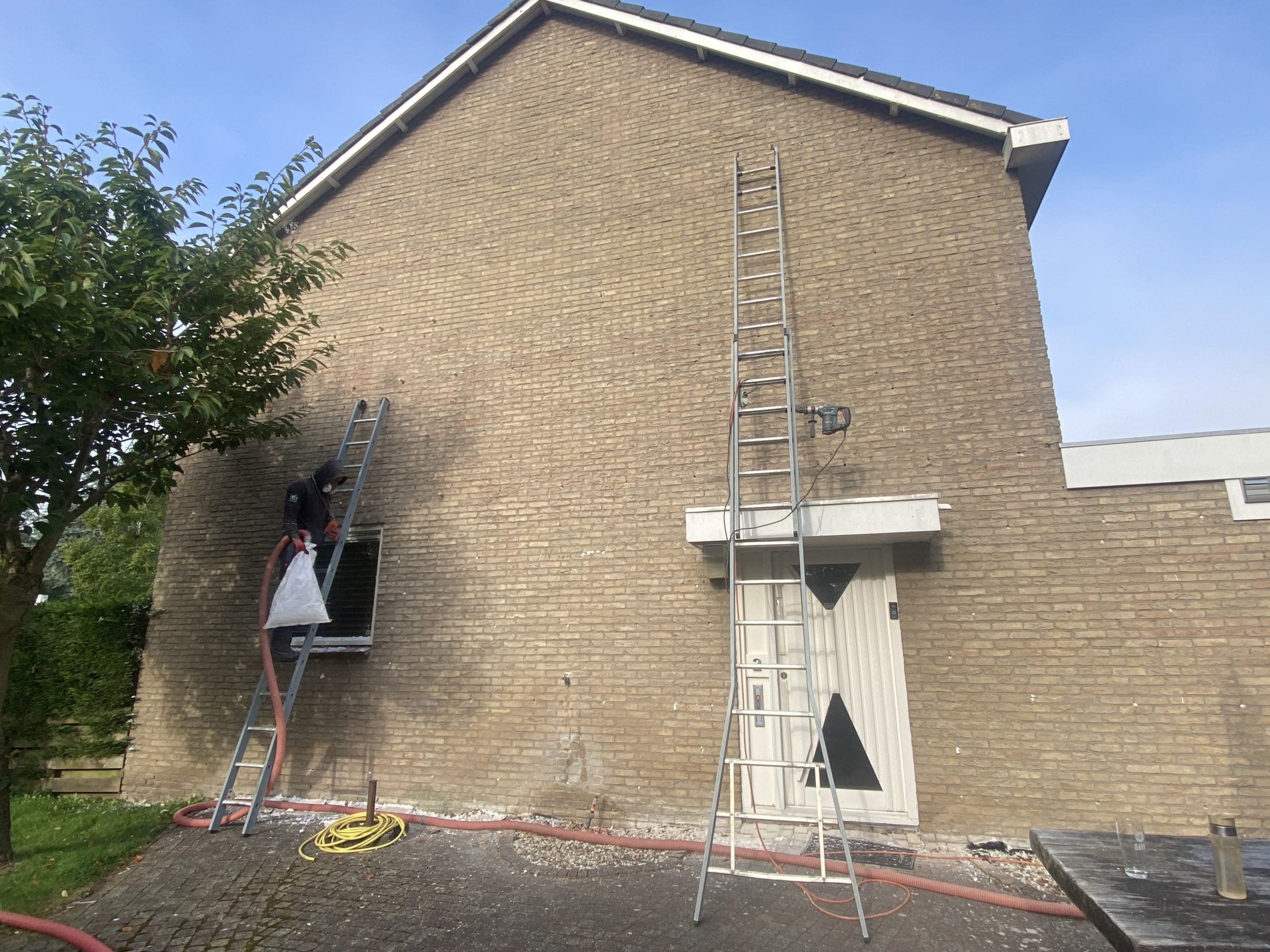 Wij reinigen de gevels d.m.v. zandstralen. (Torbo straalsysteem) Door het metselwerk van u woonhuis te zandstralen heeft u weer het mooiste huis van de straat. De diepere vervuilingen in de ondergronden worden verwijderd indien de gevels worden gezandstraald. Door een combinatie van lage druk en straalzand (olivinezand) worden de gevels gereinigd onder het Torbo straalsysteem. Hierdoor voorkomen wij schade aan de ondergronden en ziet u gevel er weer als nieuw uit. Torbo straalsysteem is ontwikkeld zodat wij veilig kunnen werken, zowel voor mens als milieu. Omdat tijdens het reinigen zand en water vrijkomt zal het zand zich niet verspreiden maar neerdalen rondom het gereinigde oppervlakte. Nadat de gevels zijn gestraald worden de gevels schoongespoeld met water, hierdoor is het gereinigde oppervlakte geheel stofvrij.