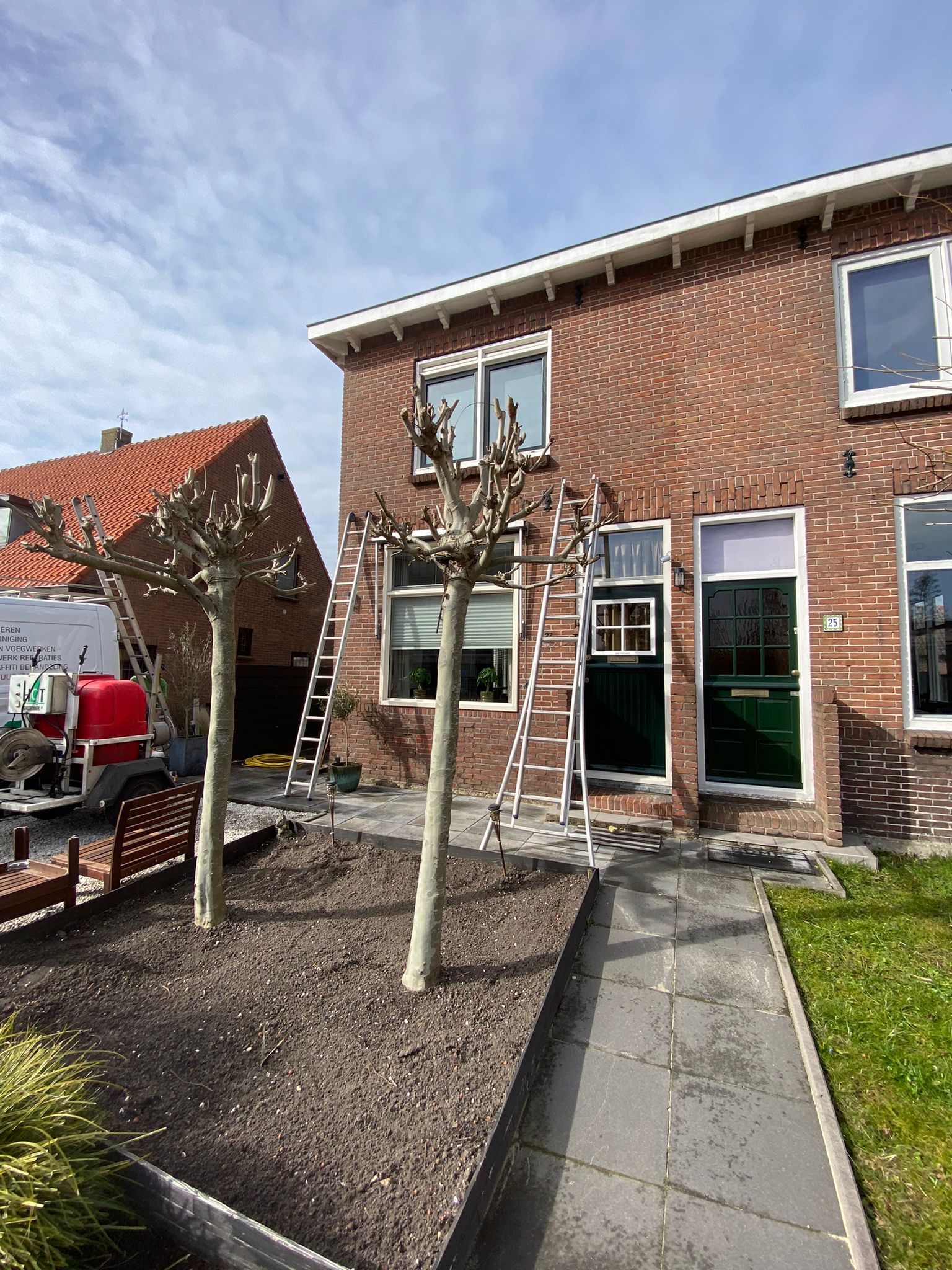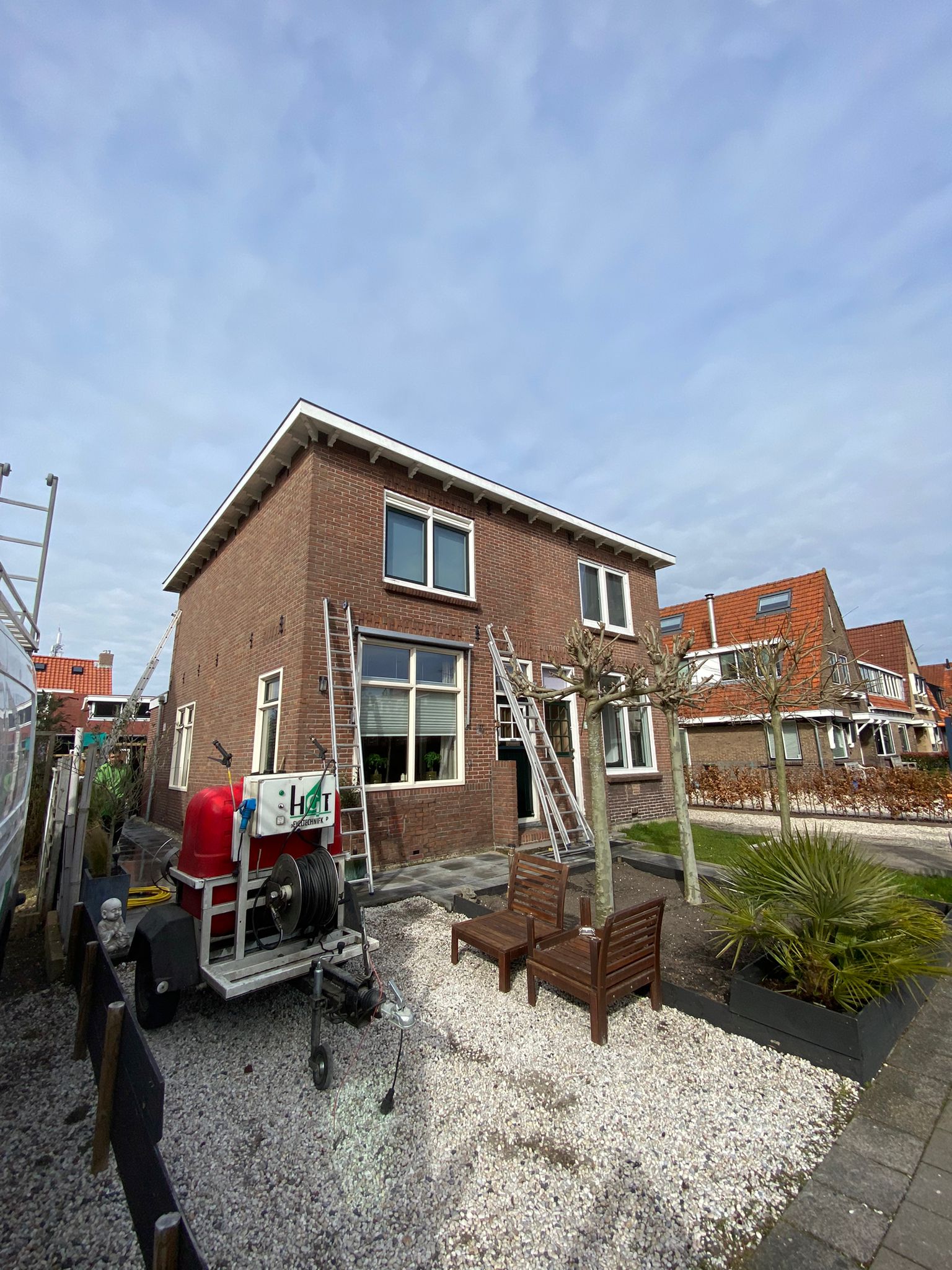 2) Het HD-reinigen van alle geveldelen van het woonhuis, berging en scheidingsmuren. (d.m.v. steam+ reinigen)