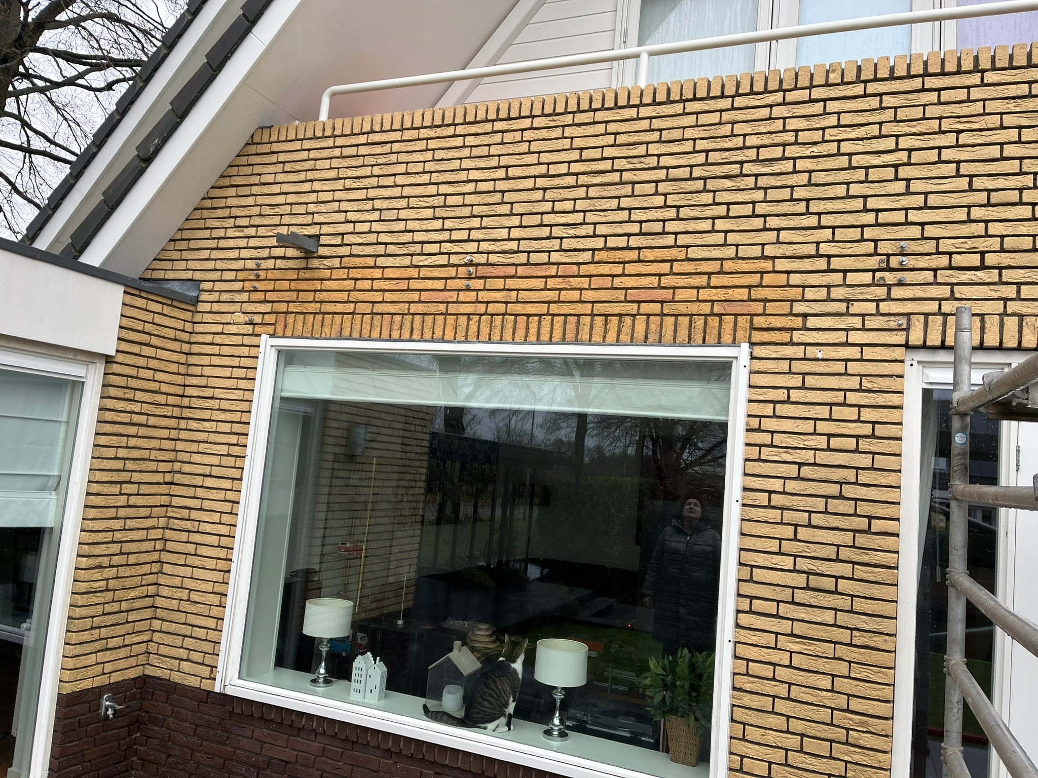3) Het impregneren van de gereinigde en opnieuw gevoegde geveldelen incl. het verzorgen van glasbewassing. (vloeibare basis)