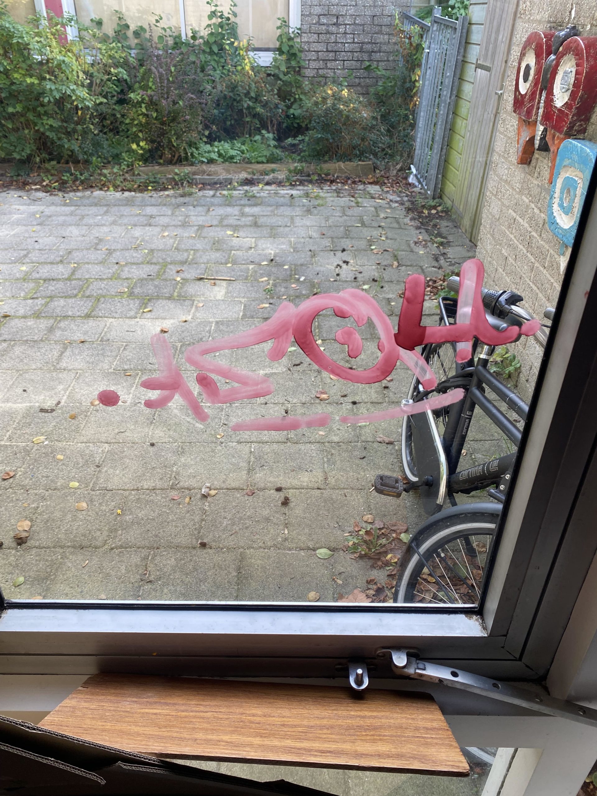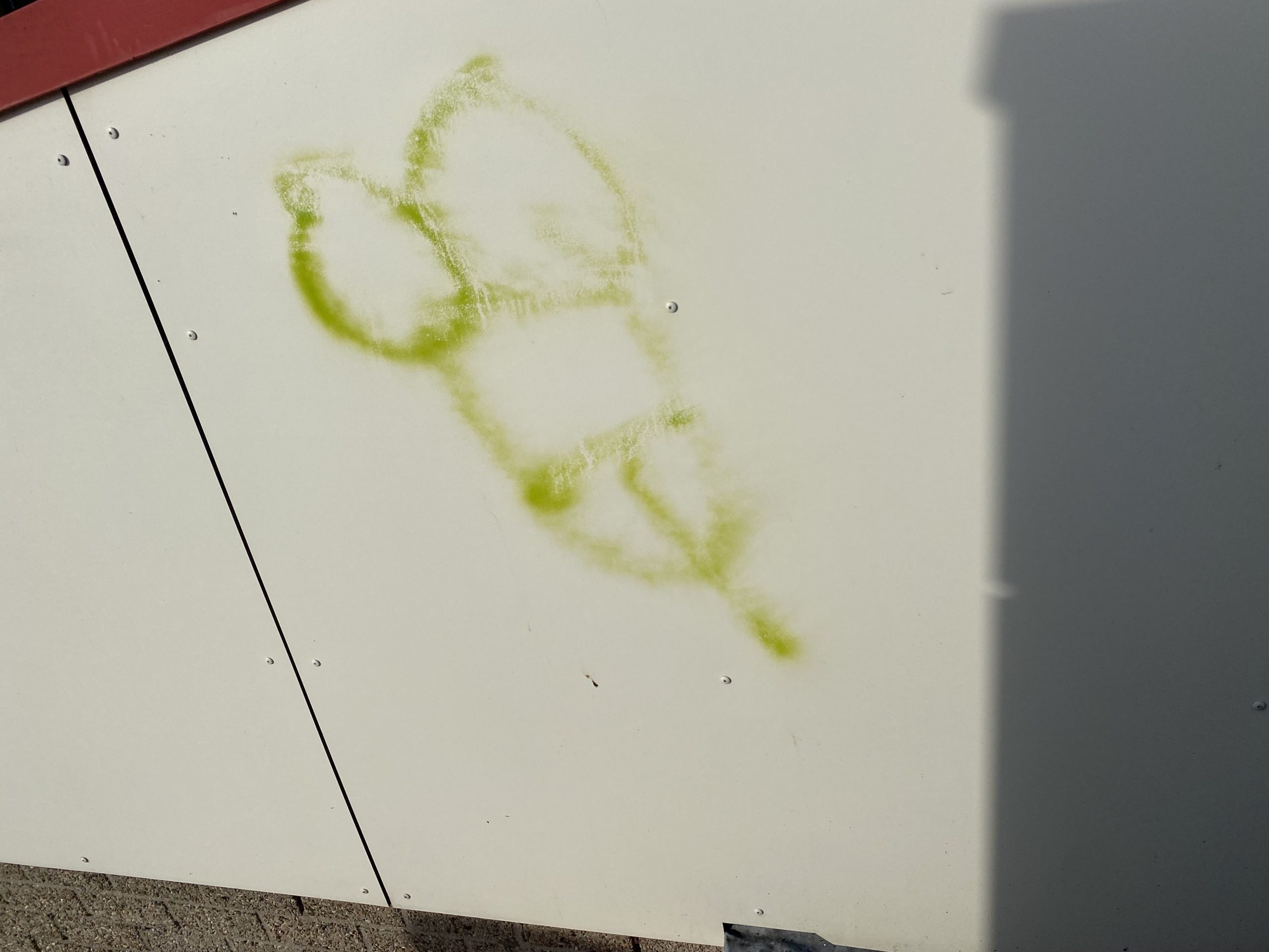 1) Het verwijderen van graffiti op de trespa geveldelen en op het glas.