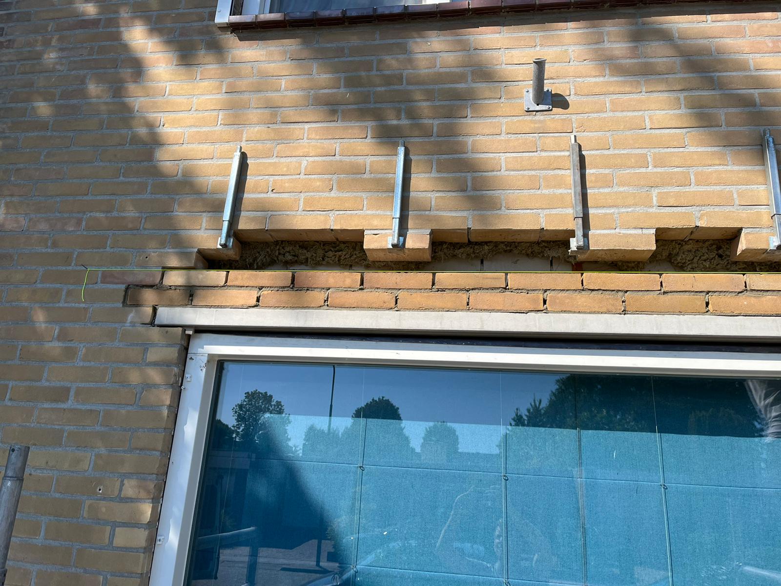1) Uithakken/slijpen en opnieuw voegen van de 1ste verdieping aan de achterkant (d.m.v. stofvrije afzuigingen)