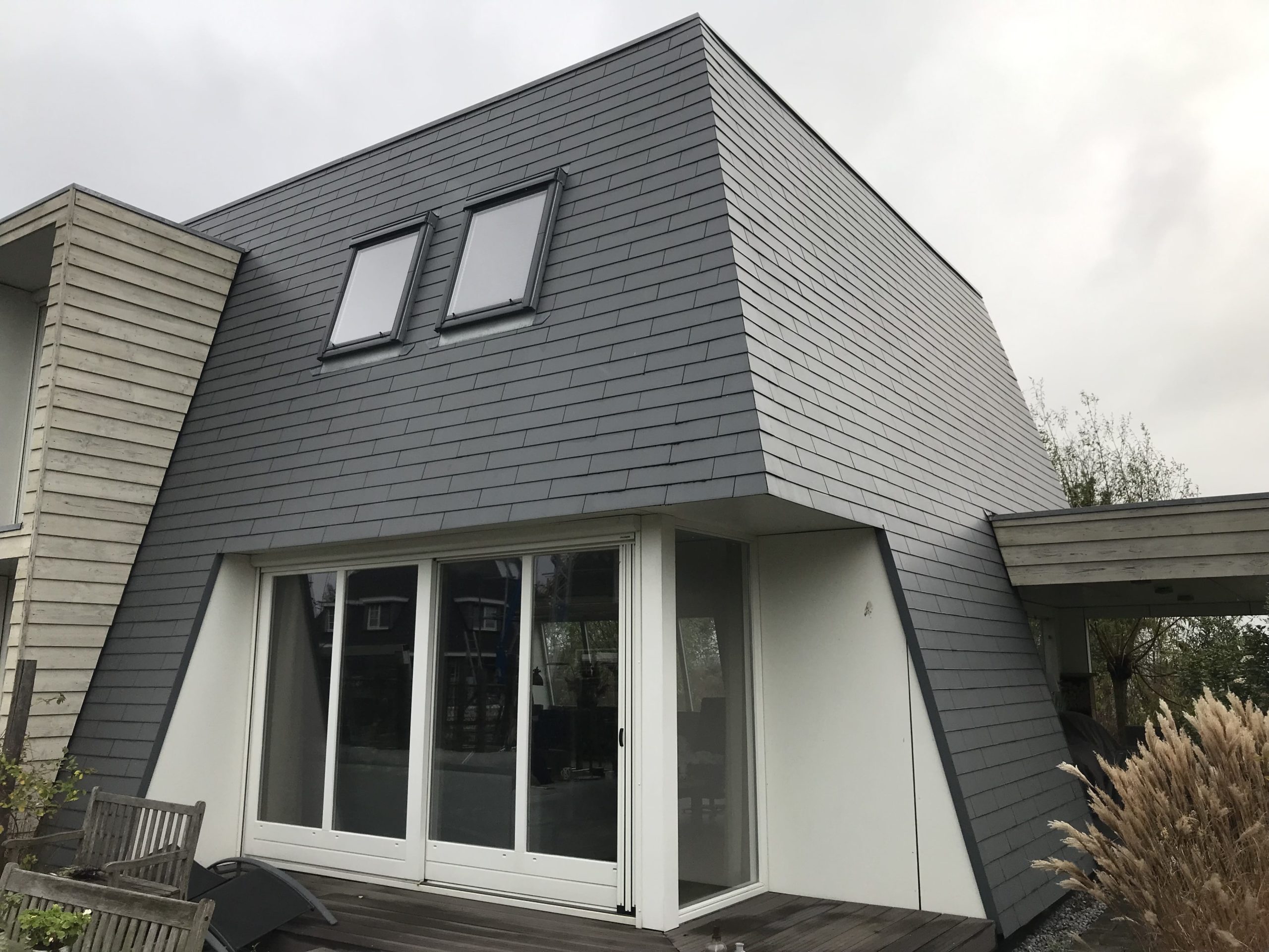 3) Het impregneren van de gereinigde en opnieuw gevoegde geveldelen incl. het verzorgen van glasbewassing. (vloeibaar basis)