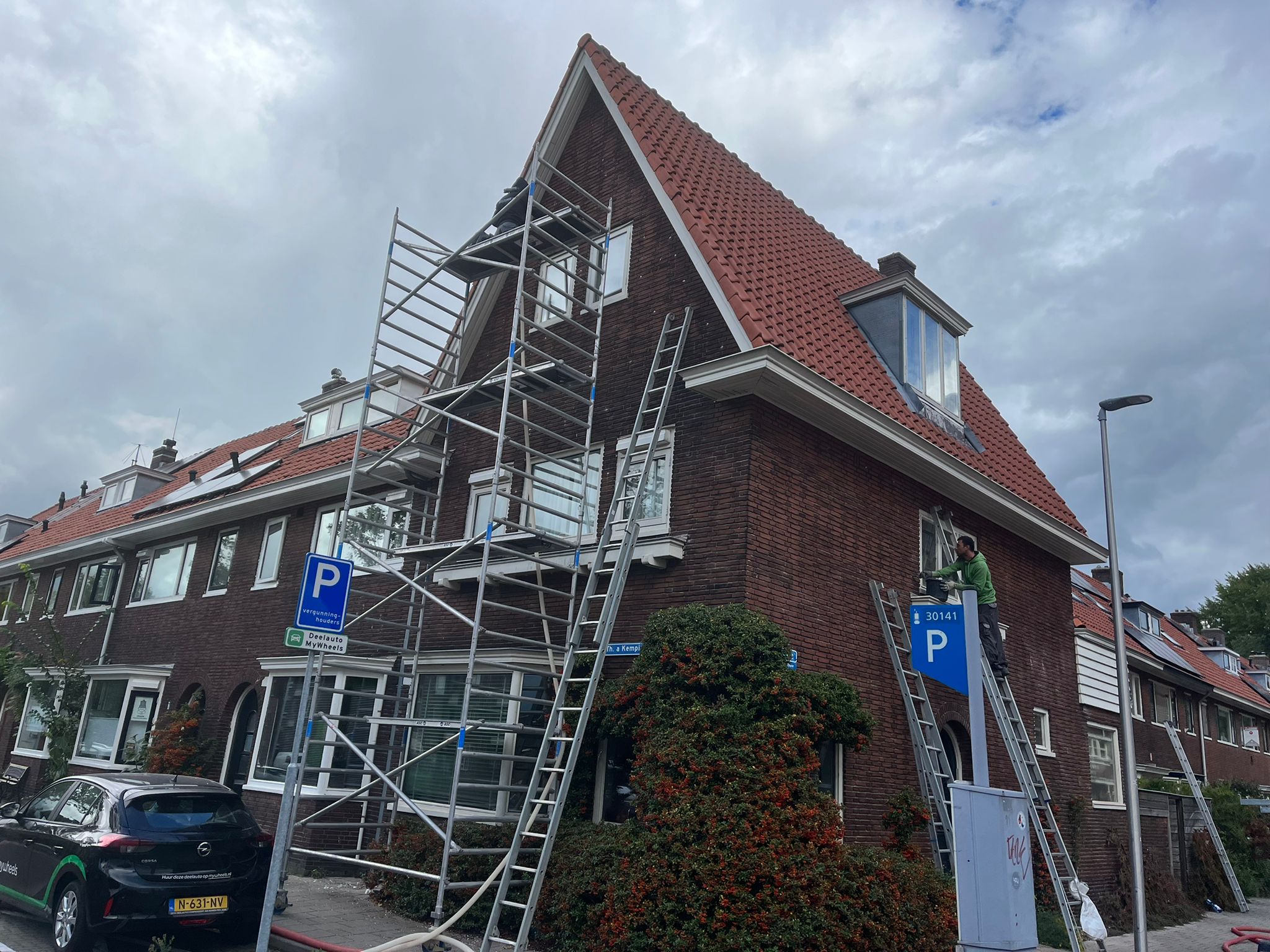 Voor aanvang van de werkzaamheden zullen wij beginnen met het toegankelijk maken van de schoorsteen. Dit wordt gedaan d.m.v. steigers en hangladders zodat wij via deze ladders bij de schoorstenen kunnen komen.