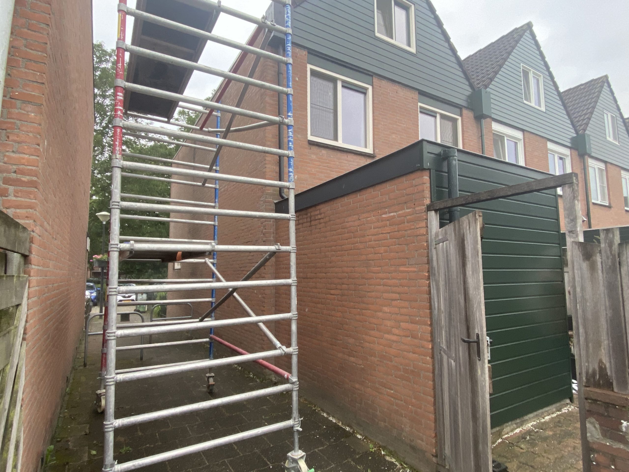 Voor aanvang van de werkzaamheden zullen wij beginnen met het toegankelijk maken van de schoorsteen. Dit wordt gedaan d.m.v. steigers en hangladders zodat wij via deze ladders bij de schoorstenen kunnen komen.