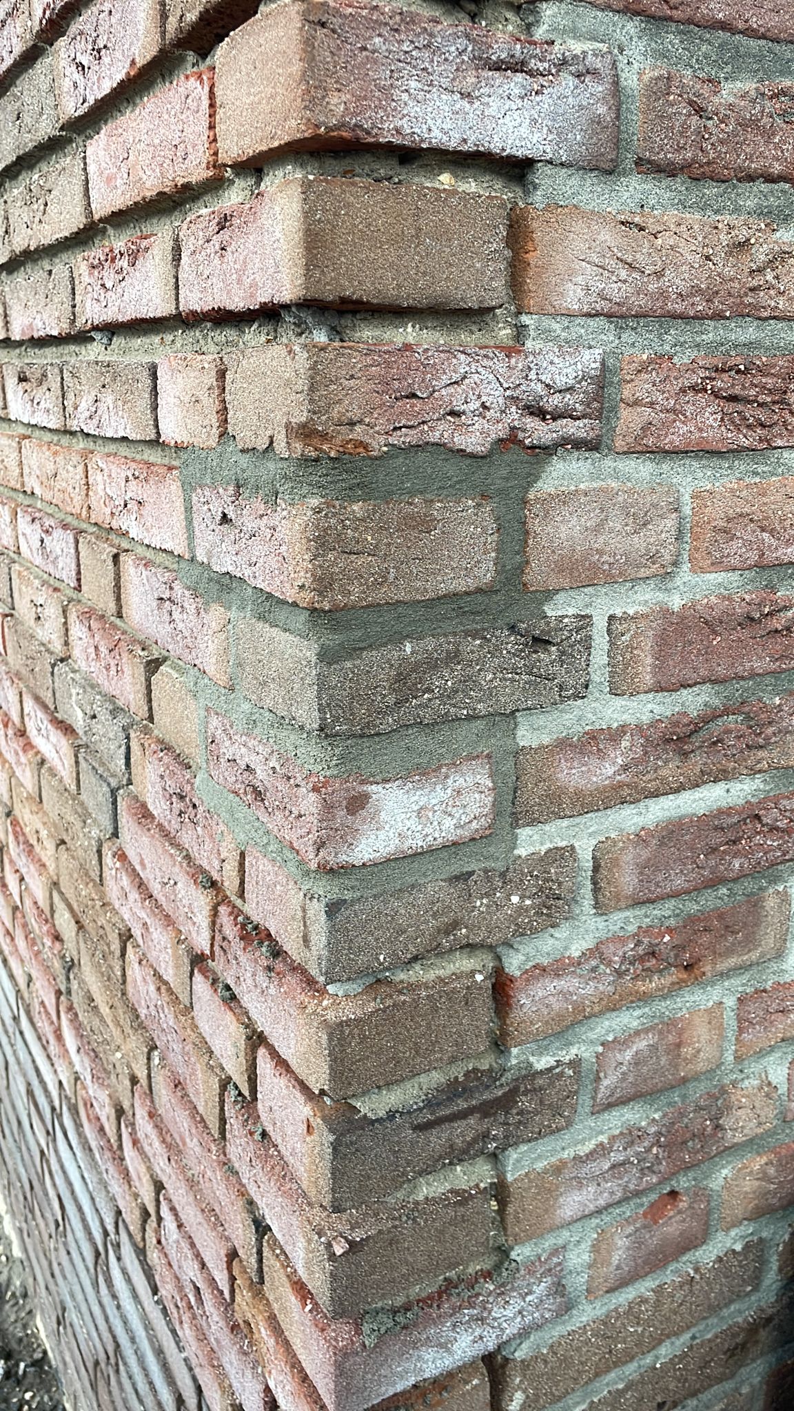 1) Het bestaande voegwerk uithakken en opnieuw voegwerk aanbrengen. voorgevel (d.m.v. stof-arm afzuigingen)