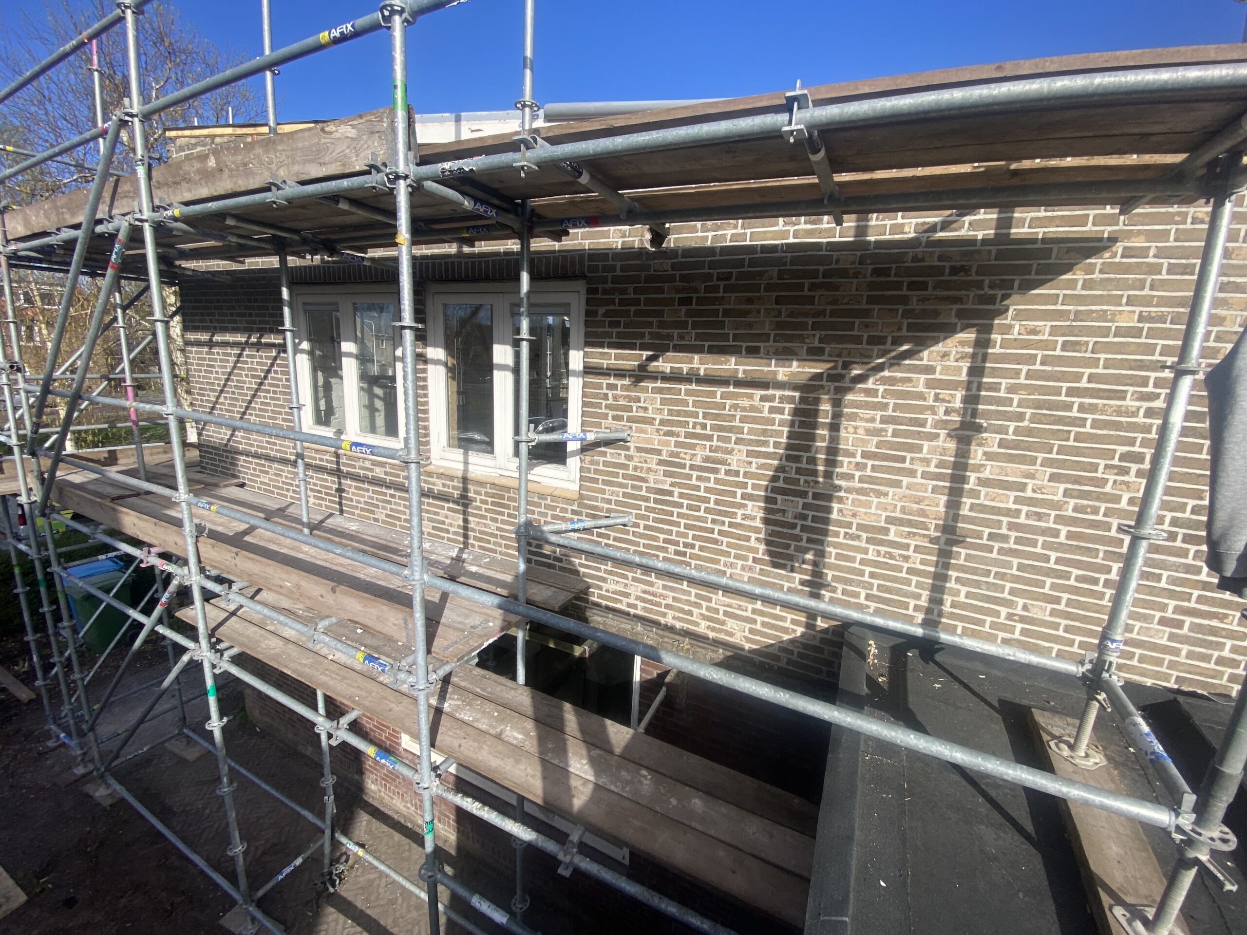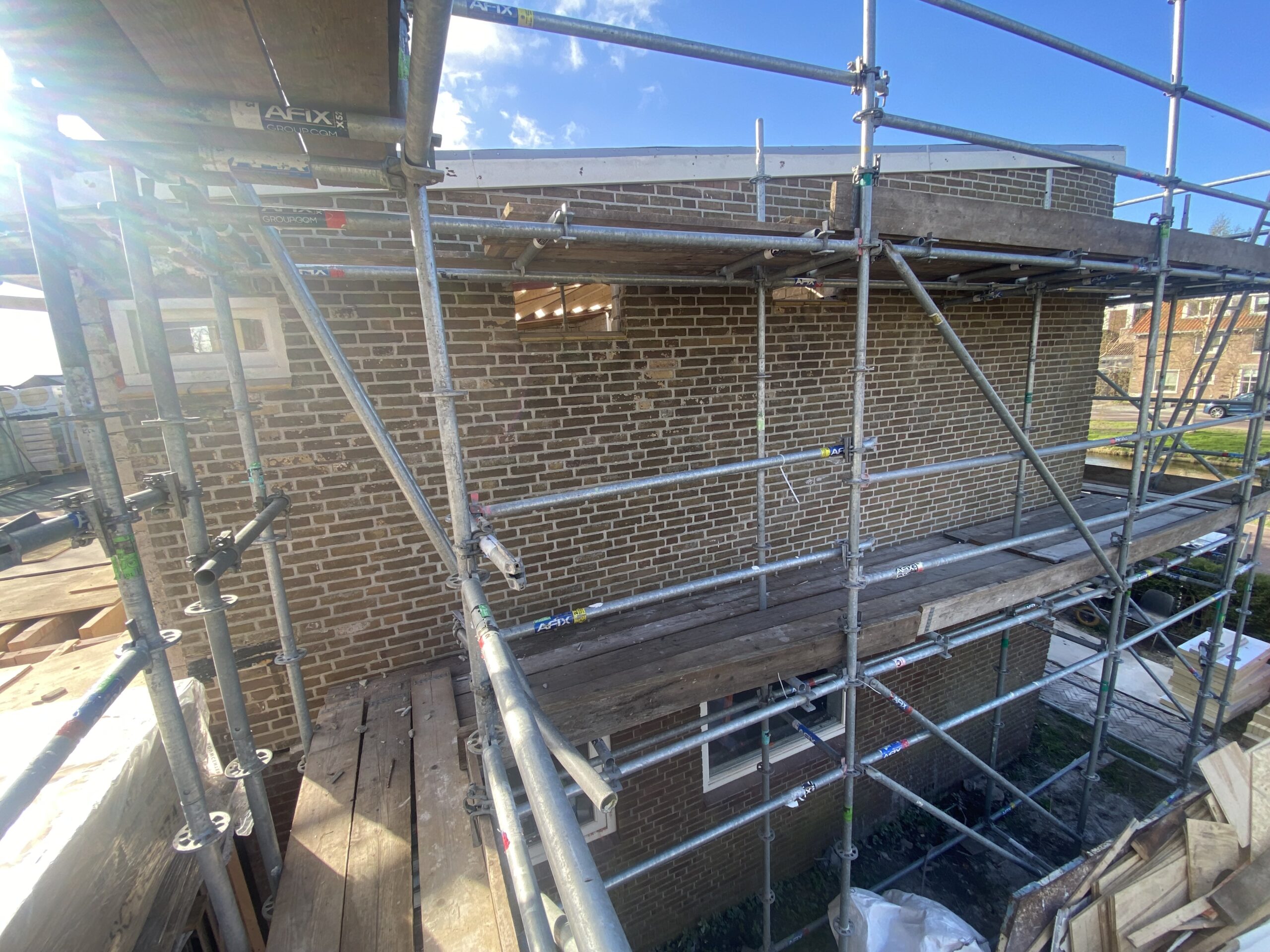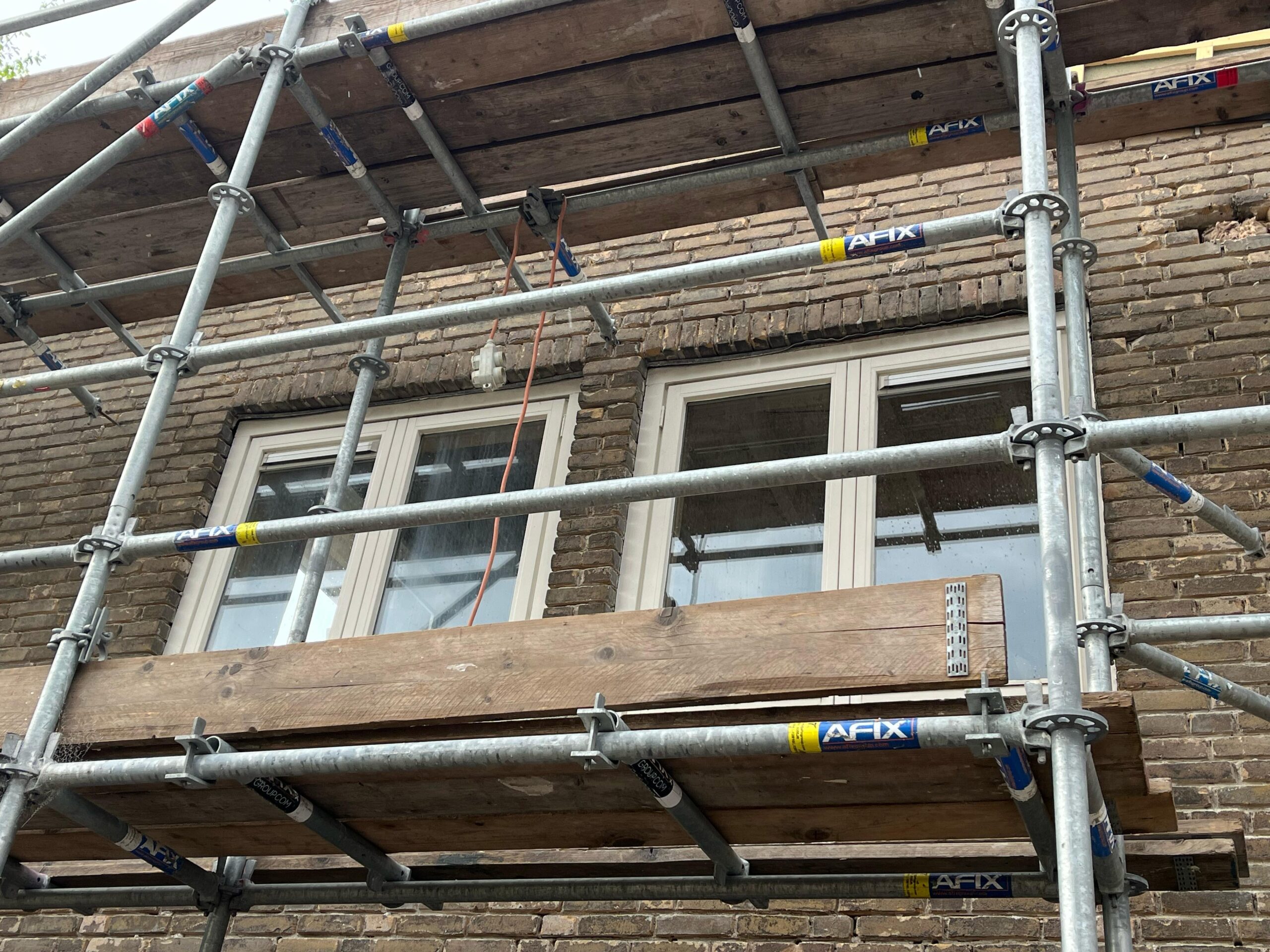 Voor aanvang van de werkzaamheden zullen wij beginnen met het toegankelijk maken van de schoorsteen. Dit wordt gedaan d.m.v. steigers en hangladders zodat wij via deze ladders bij de schoorstenen kunnen komen.