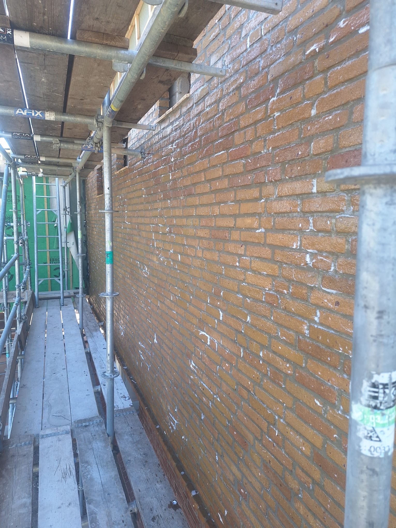 2) Het HD- reinigen van het metselwerk. (d.m.v. steam+ reinigen)